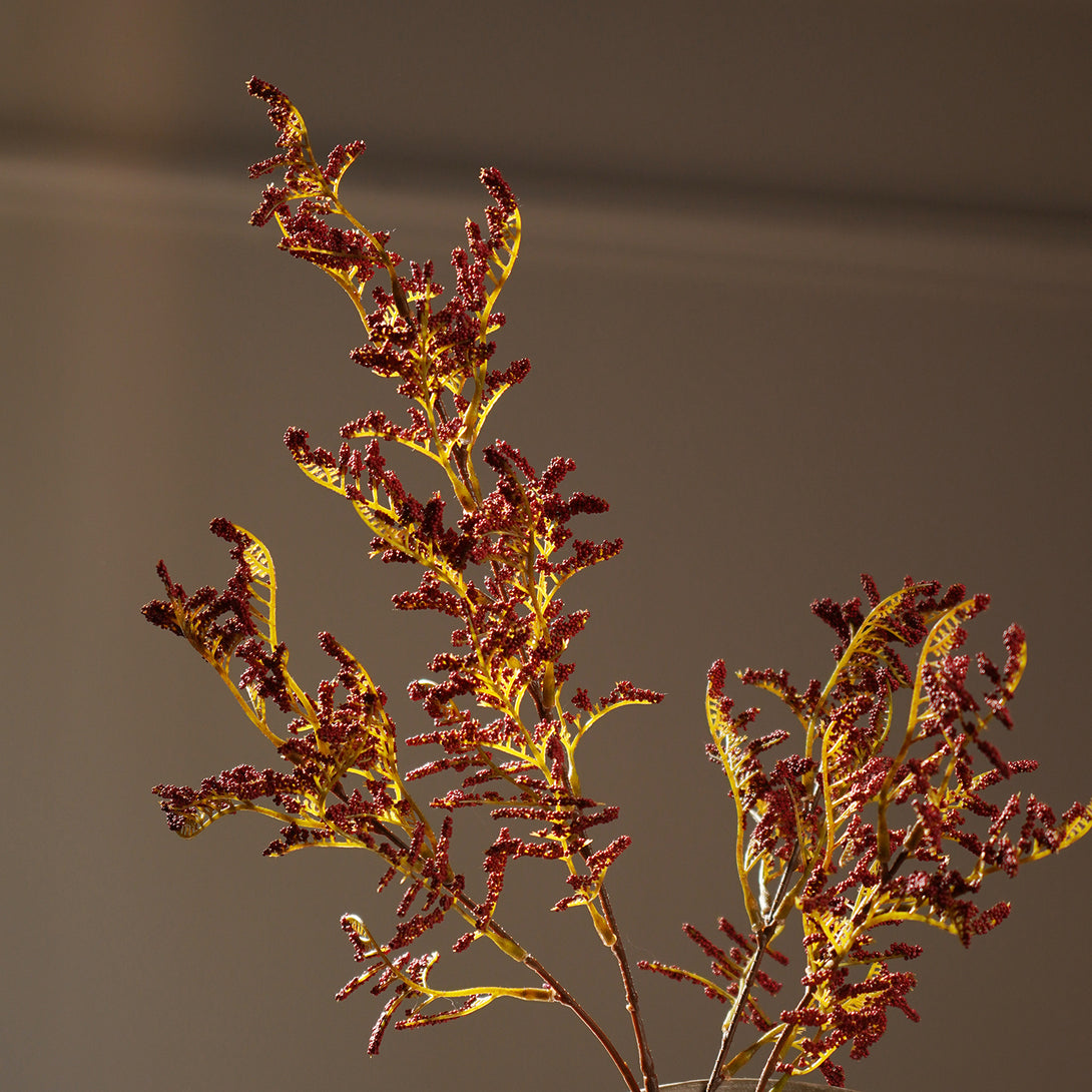 This orange statics flower stem lends a pop of warm, earthy tones to your décor. Perfect as a single statement piece or combined in arrangements for a rustic charm.