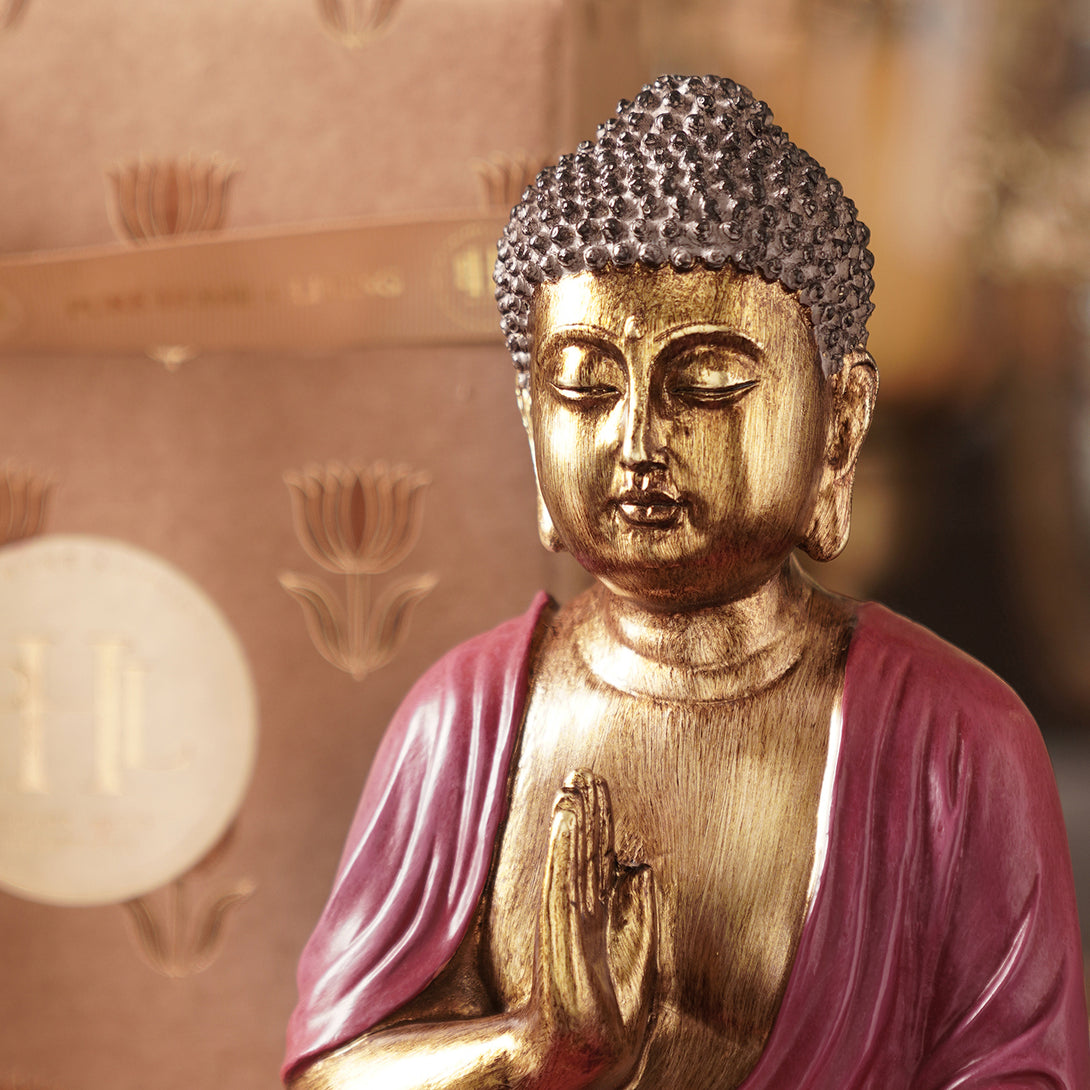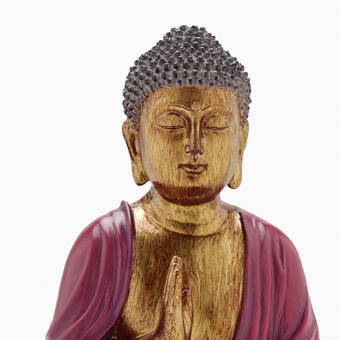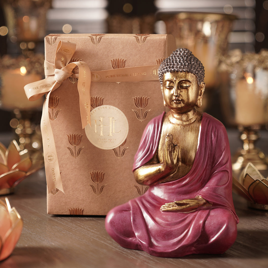 This exquisitely detailed pink Buddha figurine will enrich your space with positivity. Crafted in polyresin and finished in antique gold, this piece is perfect for styling your garden area, shelf or entryway.