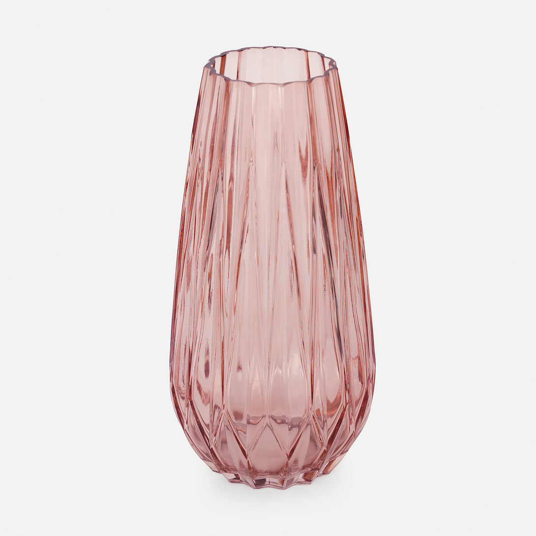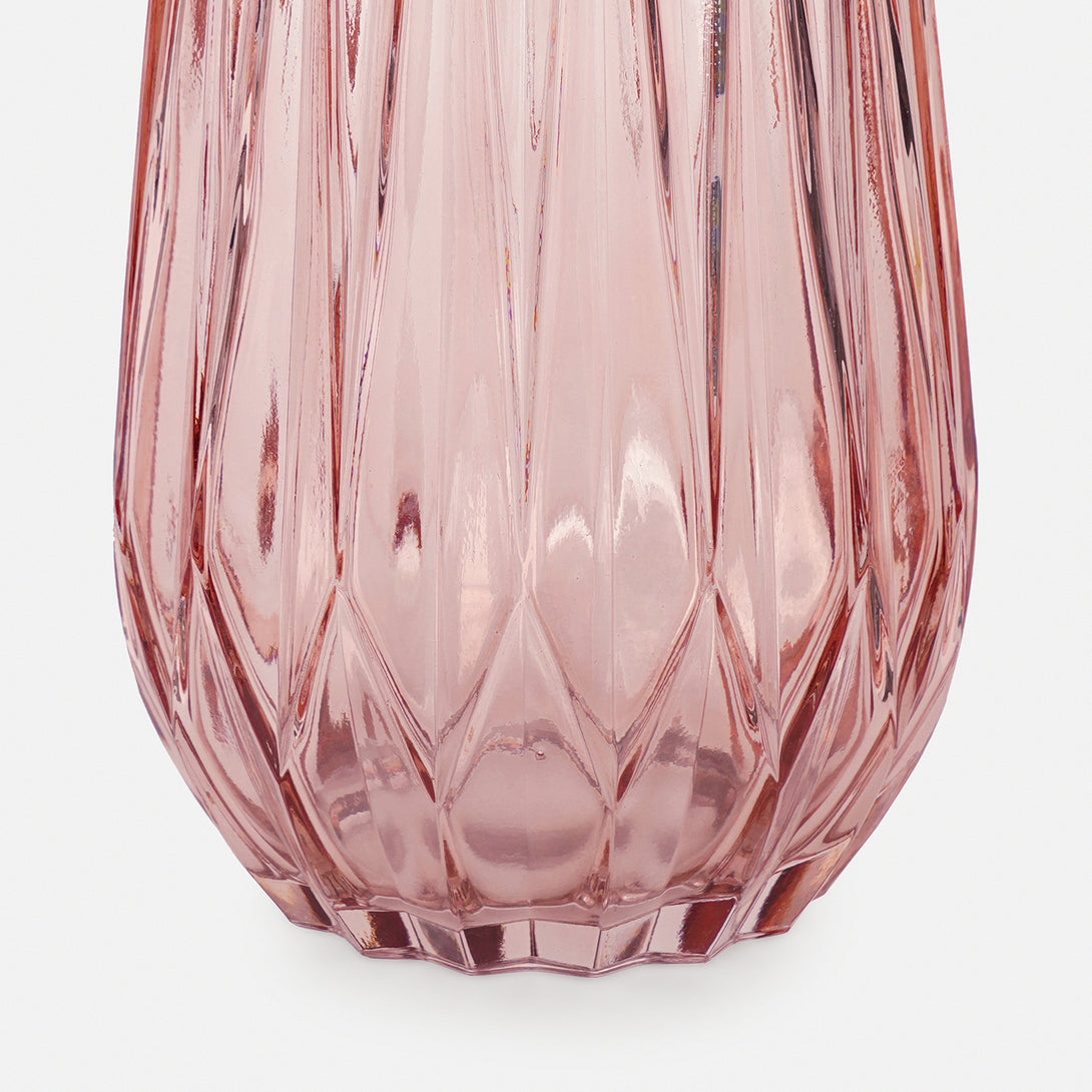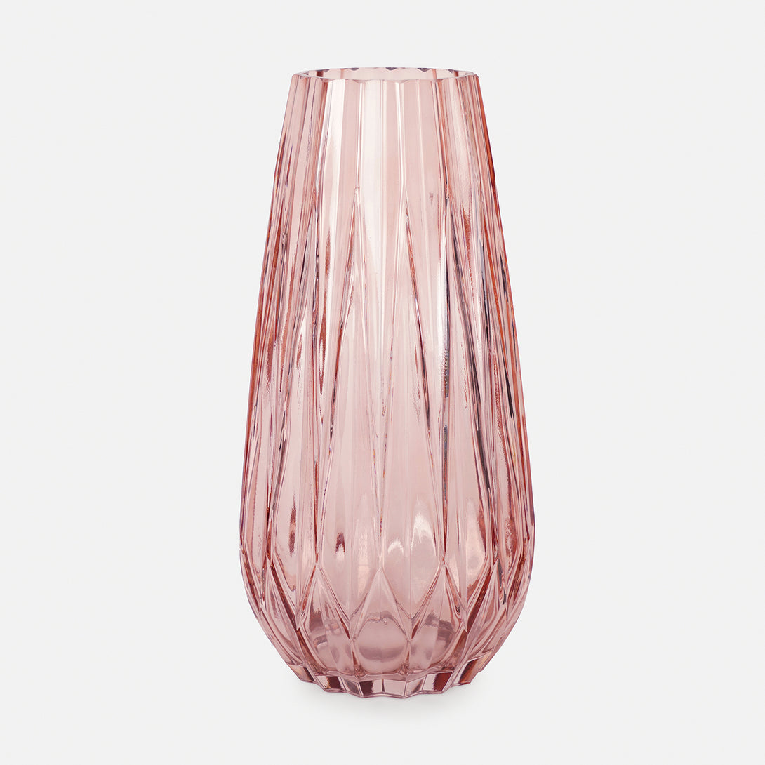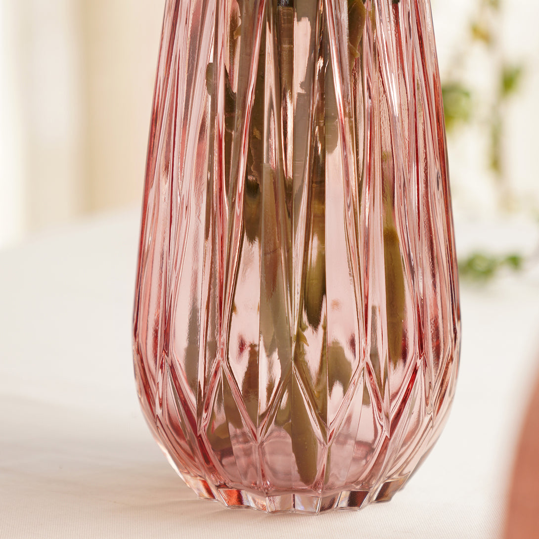 Elevate your floral displays with this exquisite pink glass vase. It features a standout diamond cut that catches the light and adds a touch of glamour to any space.
