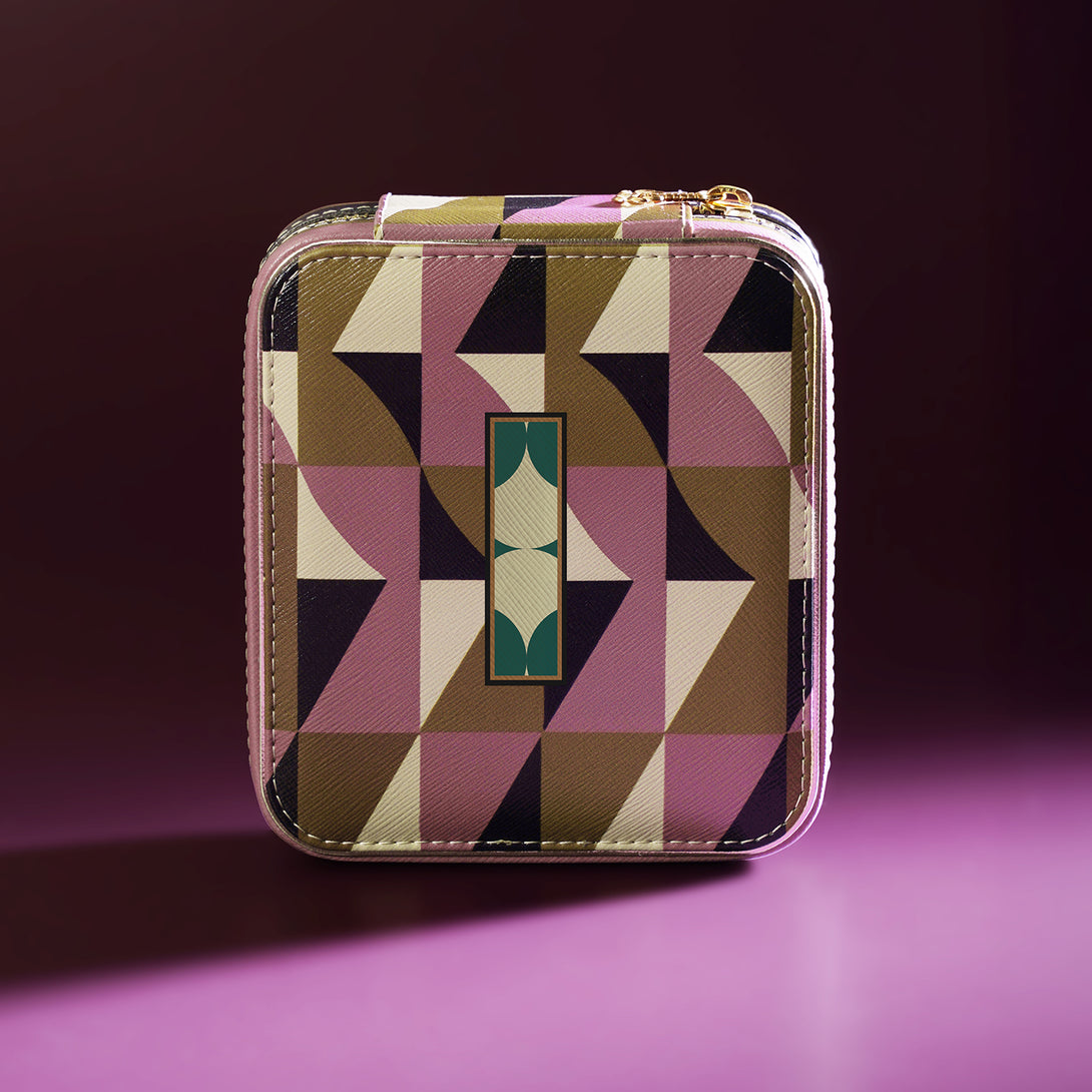 Chic and compact, this pink and green 'I' faux leather jewellery box keeps your treasures safe and tangle-free on the go. Its bold design and secure structure make it the perfect companion for stylish, organized travel.