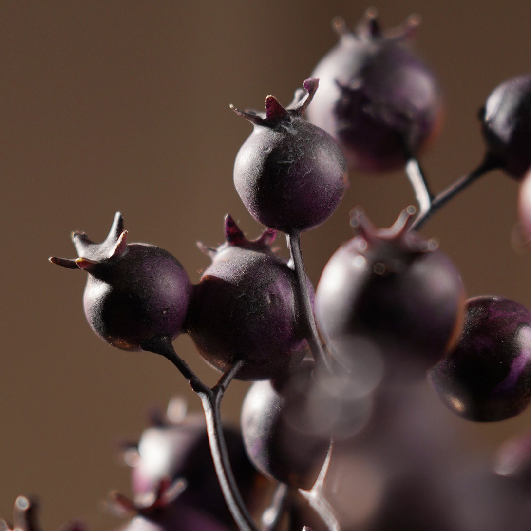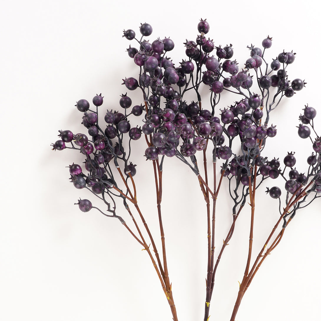 This purple berry artificial flower adds depth and texture to any arrangement. Its rich, dark tones create a striking accent for modern and rustic décor alike.
