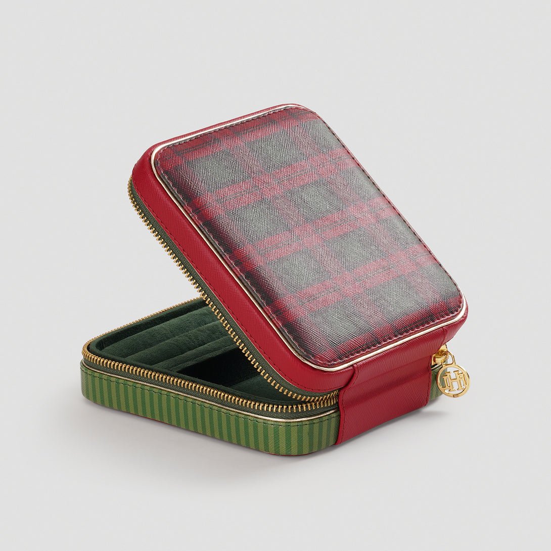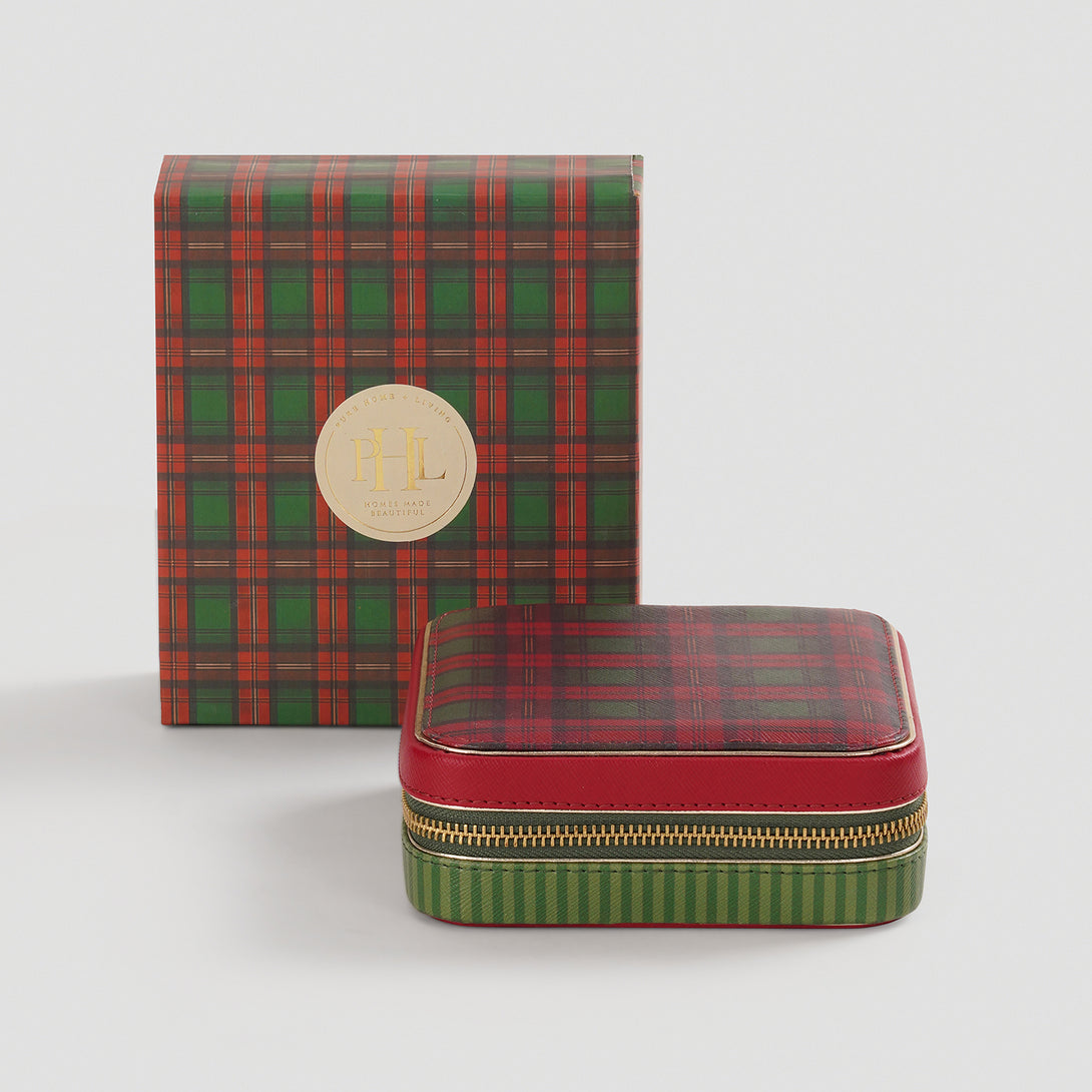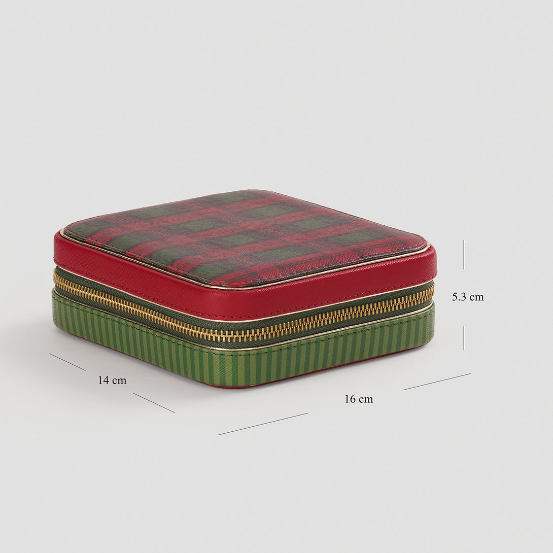 Red Green Plaid Faux Leather Travel Jewellery Organiser