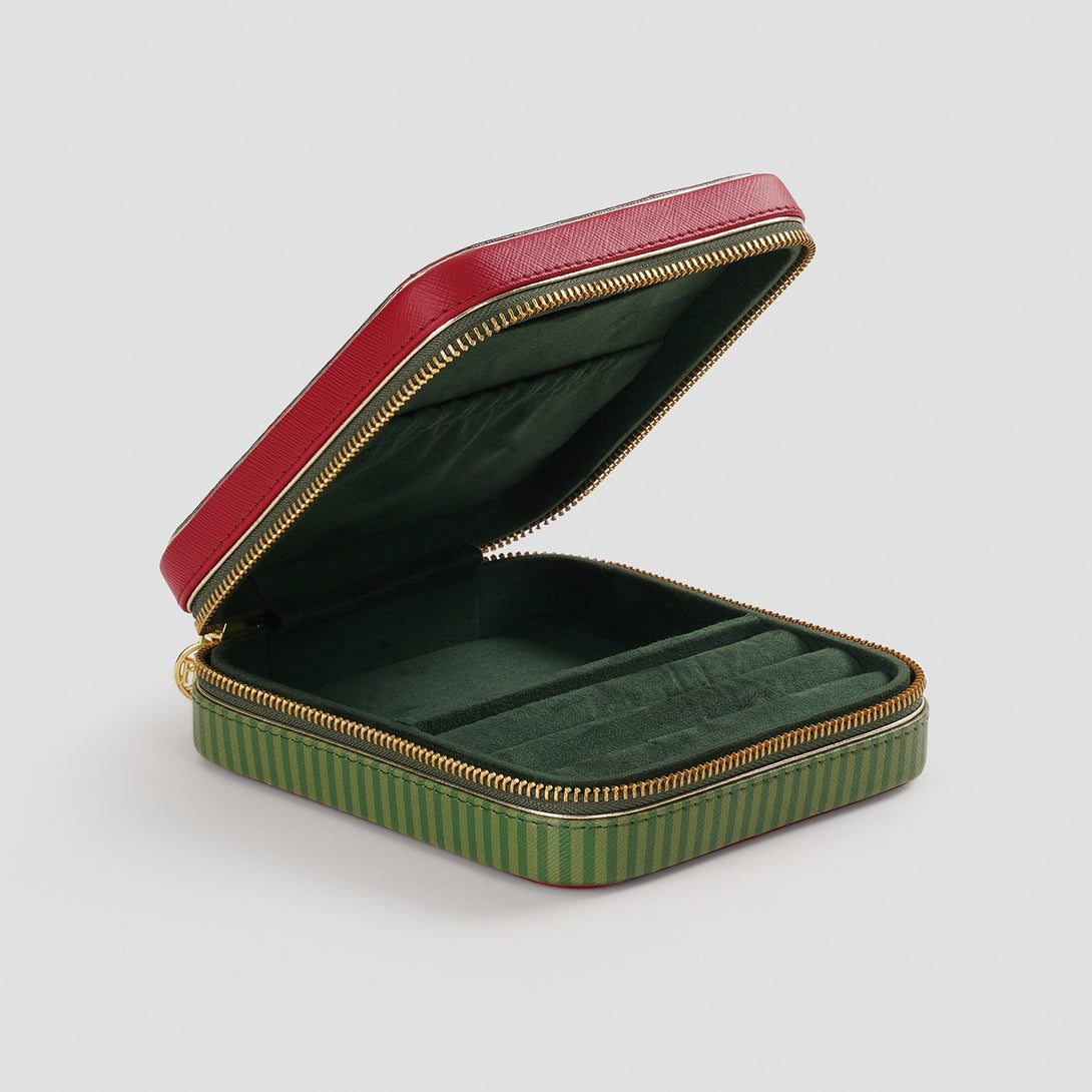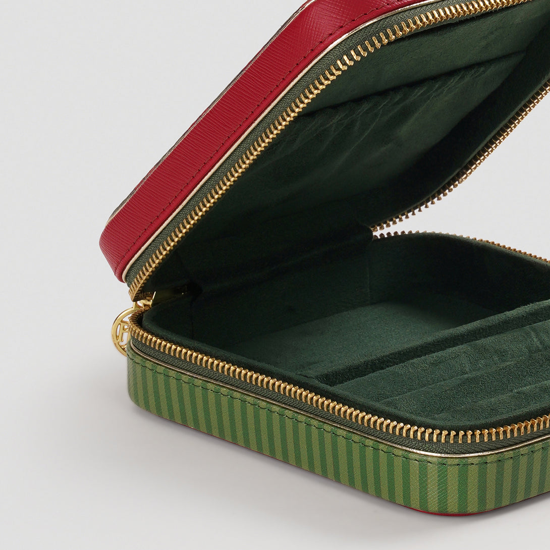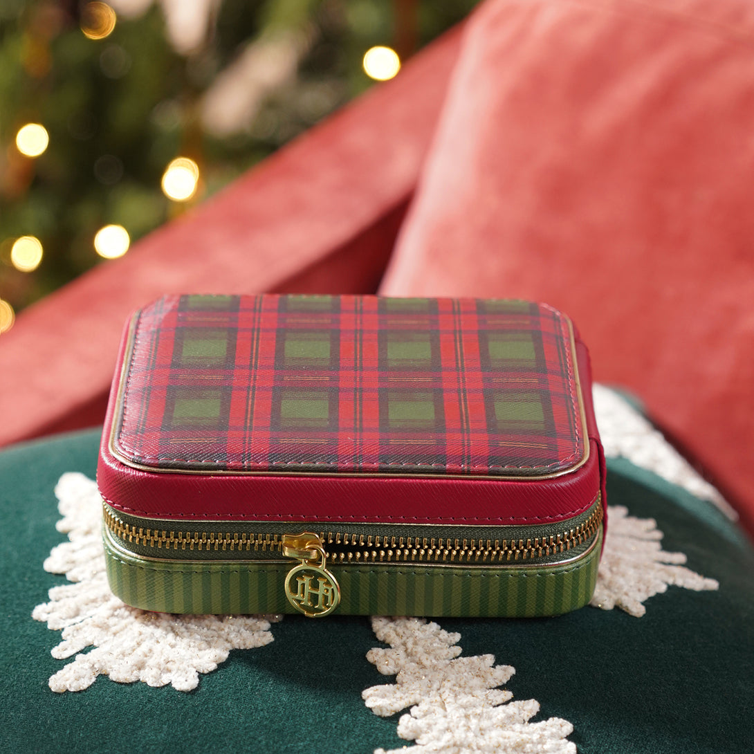 Red Green Plaid Faux Leather Travel Jewellery Organiser
