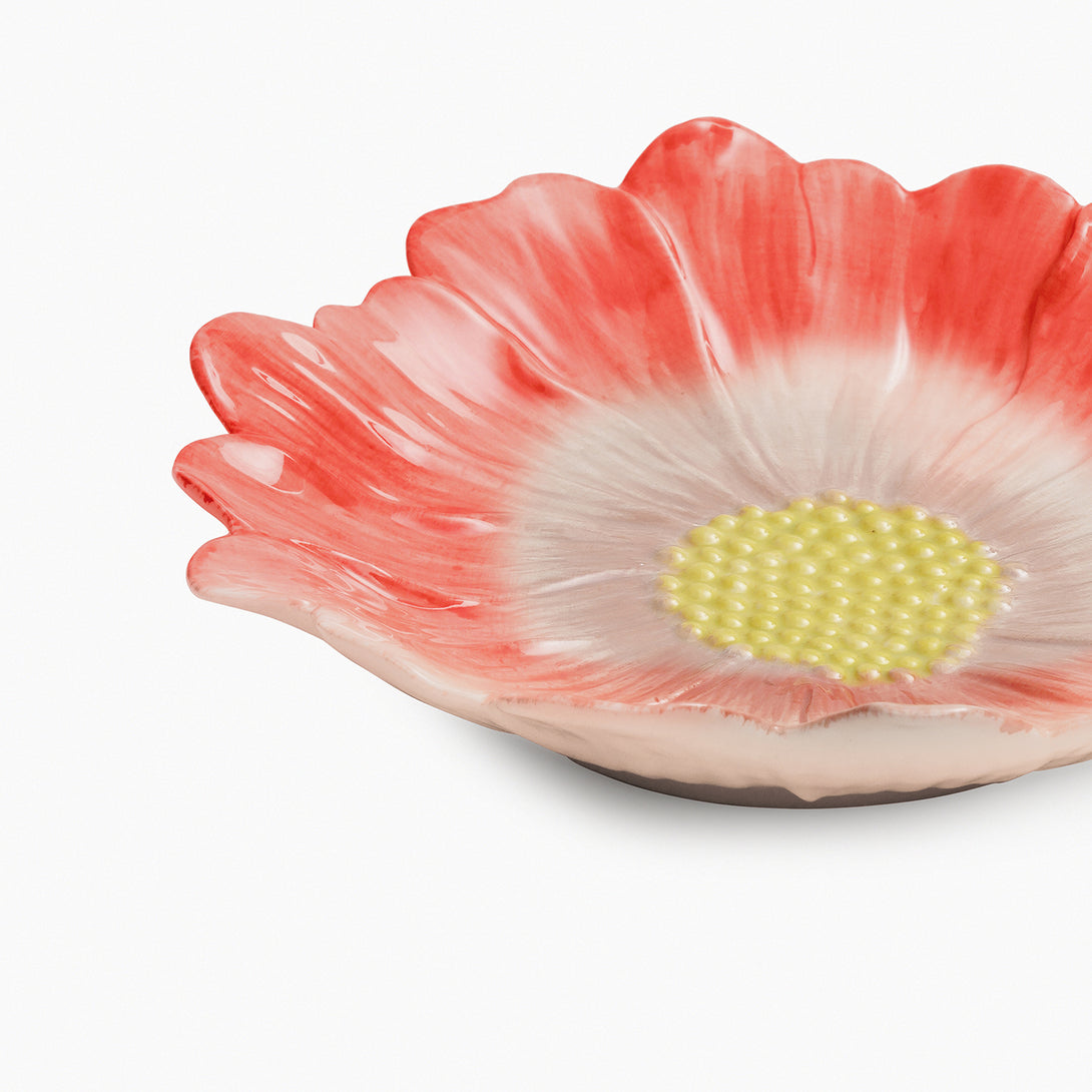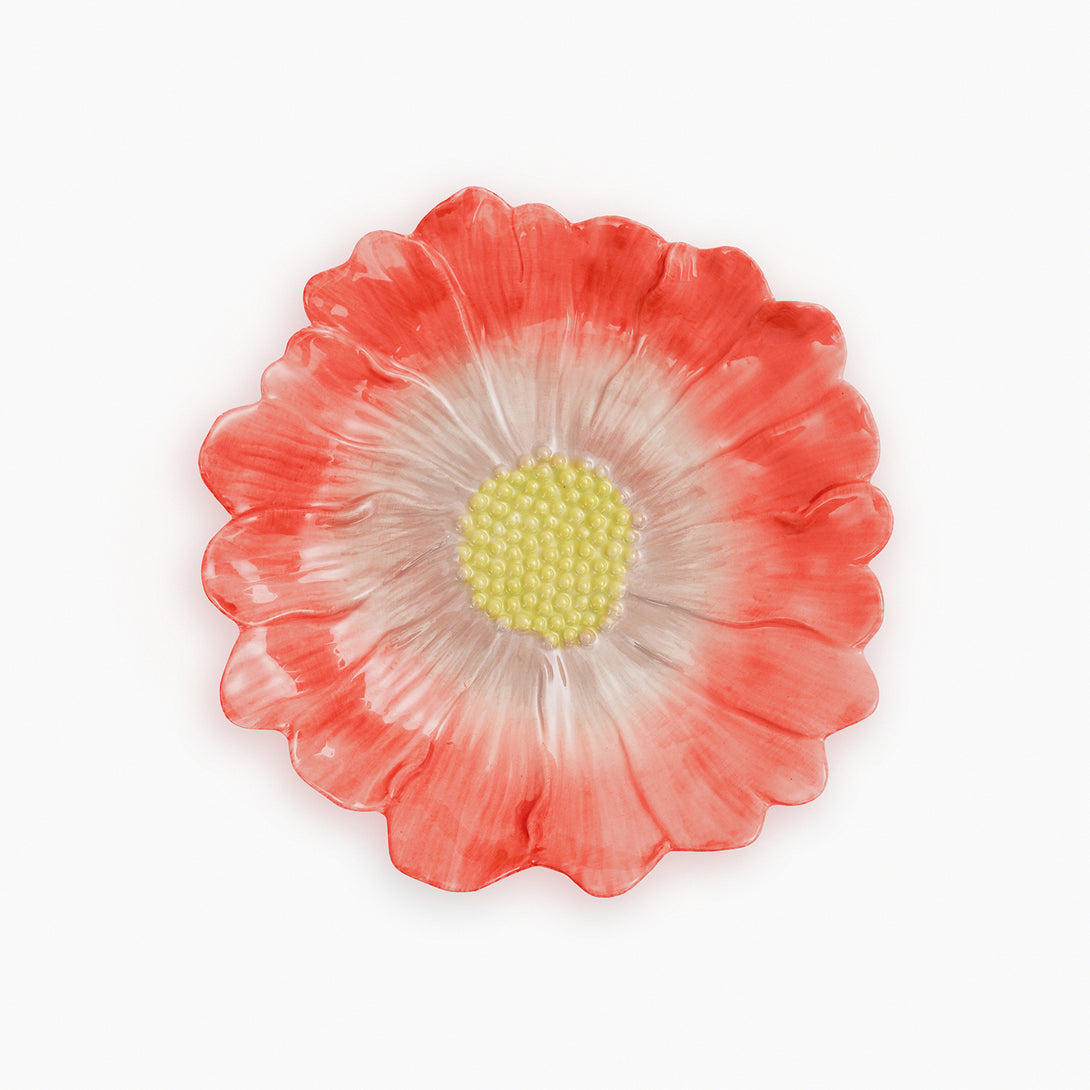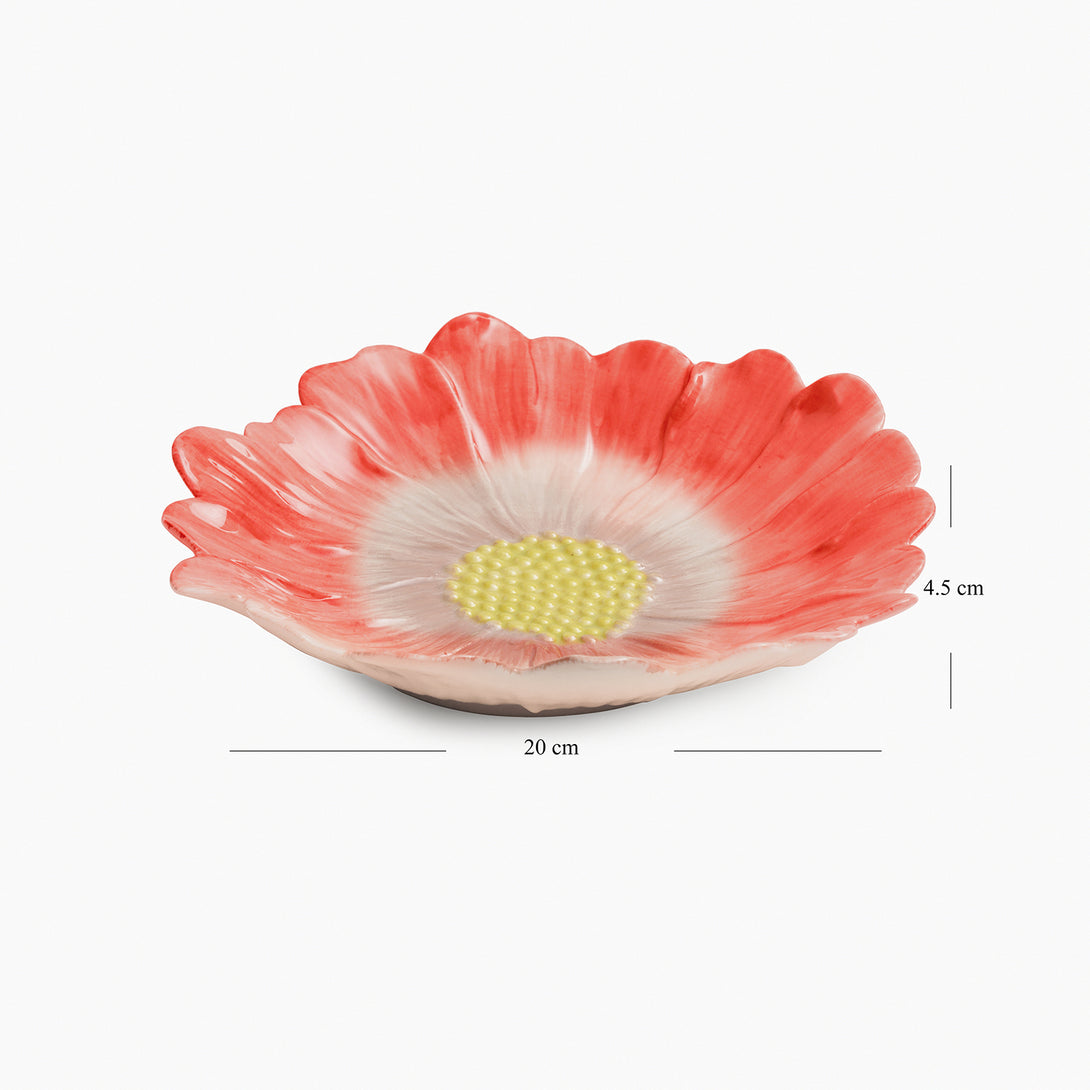 Make a statement with this red ombre floral-shaped ceramic platter. Perfect for serving in style or adding an elegant touch to your decor.
