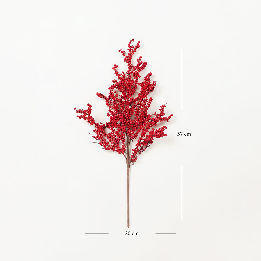 This vibrant red berry spray will add festive texture and richness to any arrangement. Its lifelike clusters bring a pop of seasonal charm to vases, wreaths, and holiday décor.