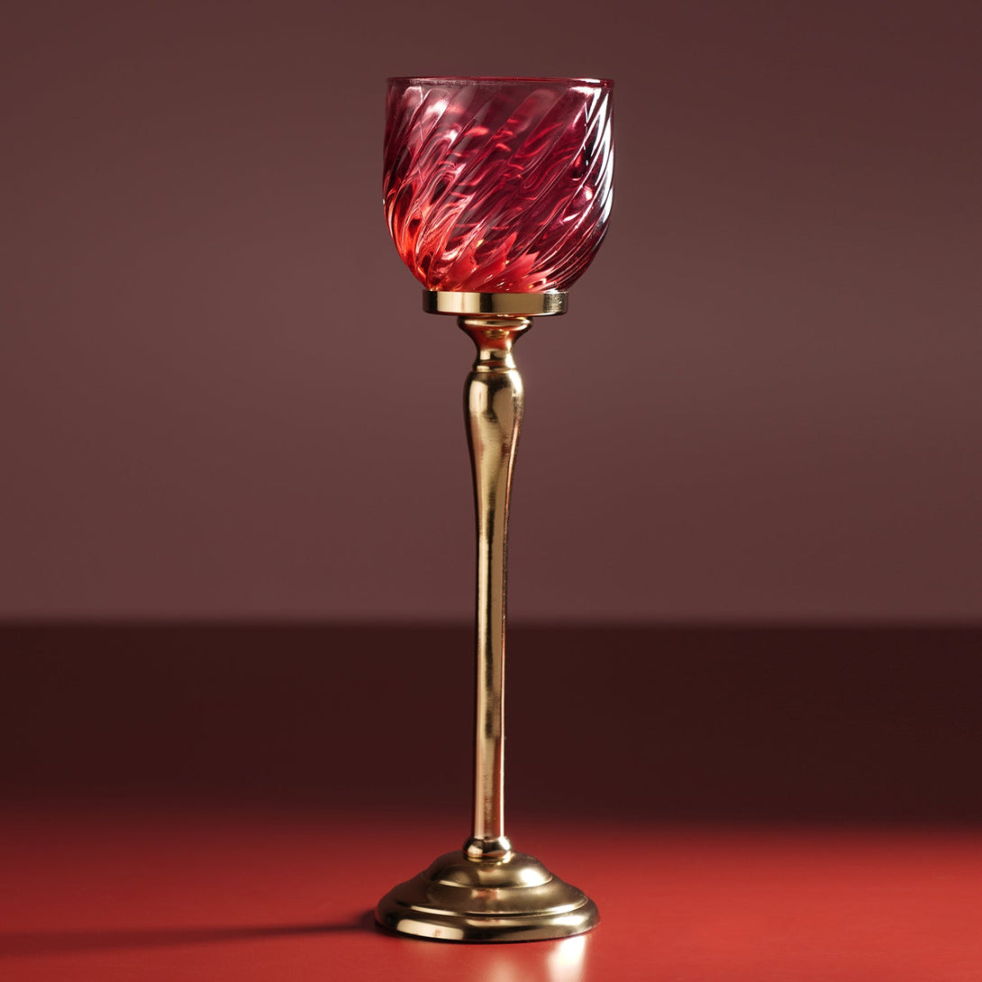 Cast a soft, mesmerizing glow with this red hurricane candle holder. Its elegant design and vibrant hue will add an elegant touch to any setting.