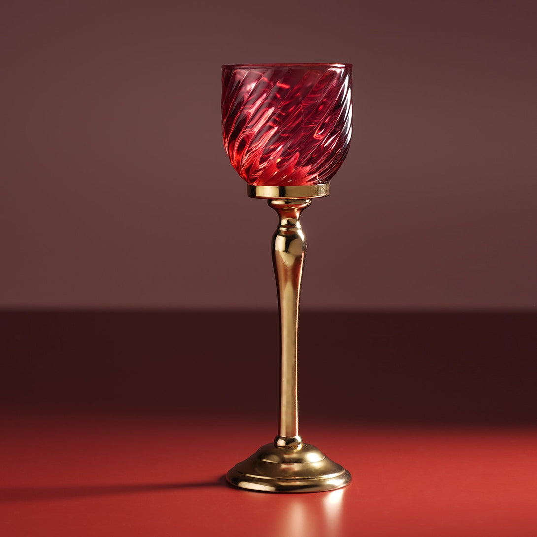Cast a soft, mesmerizing glow with this red hurricane candle holder. Its elegant design and vibrant hue will add an elegant touch to any setting.