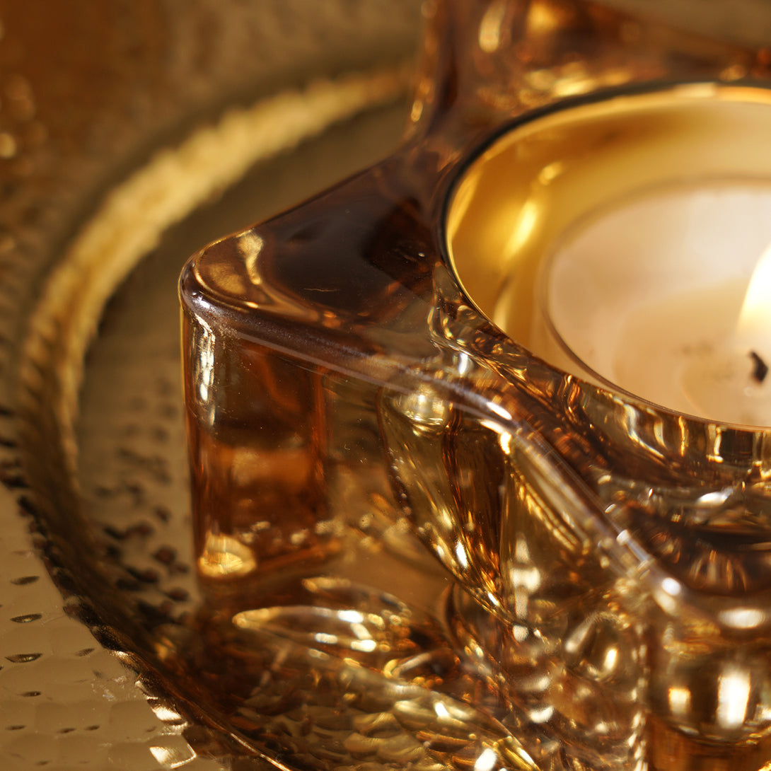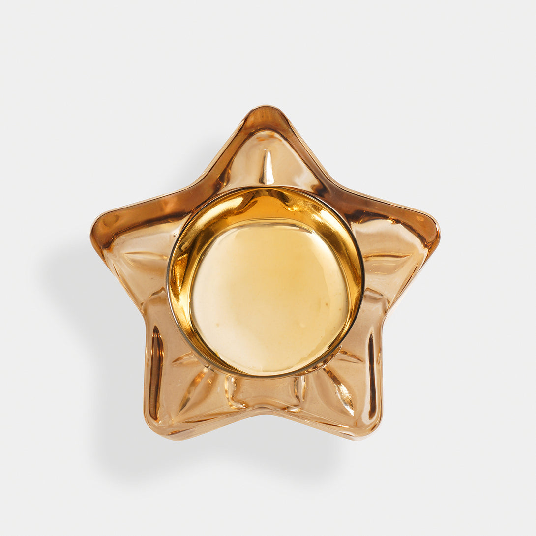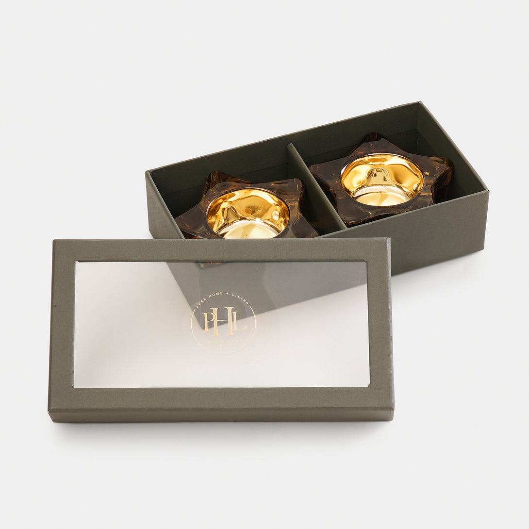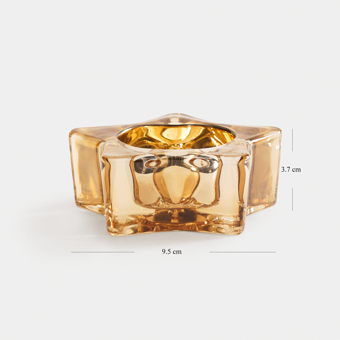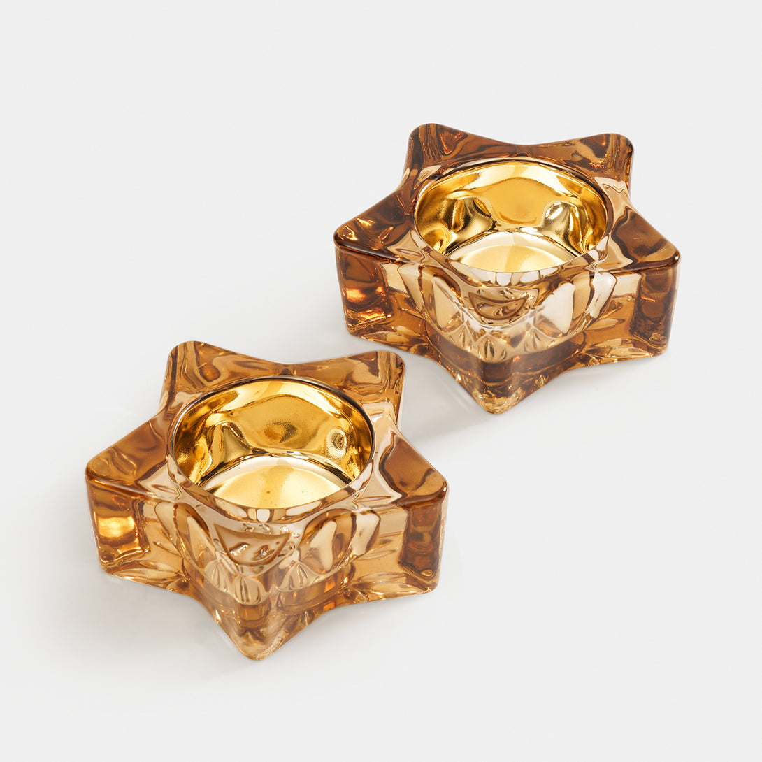 Set of 2 Amber Star Shaped Tealight Holders