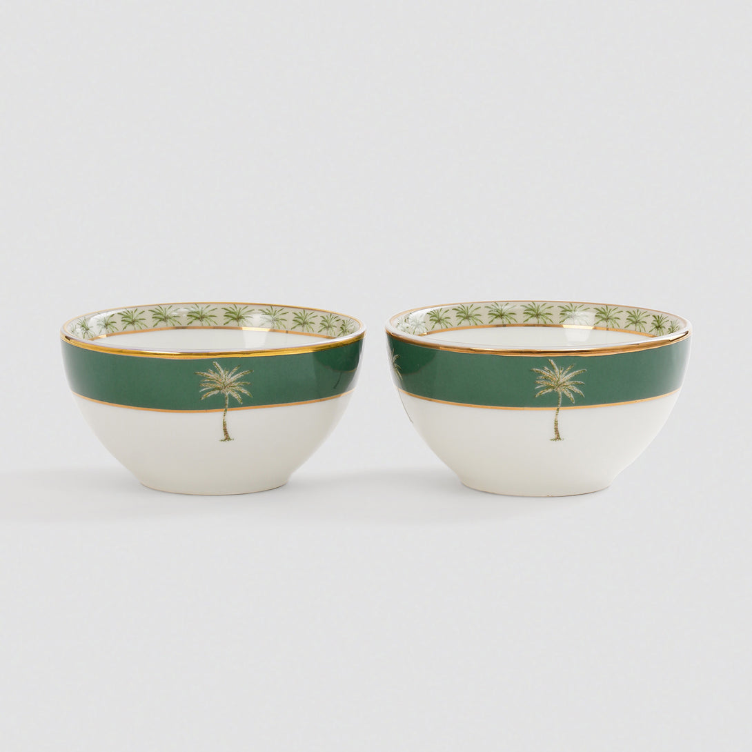 Be the host with the most with these beige and green bowls. Ideal for celebrations, these bowls offer a unique design that ensures a host-approved, memorable event. Thoughtfully designed as a part of our limited edition, Las Palmas collection, these bowls are perfect for a festive, host-approved party atmosphere. They feature a sweet yet striking print and a glazed, glossy shine for an extra touch of brilliance.