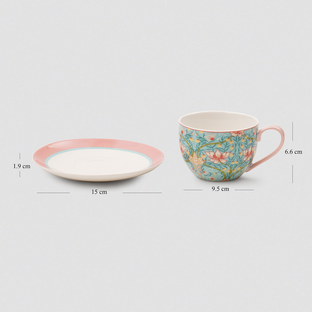 - Product Dimension: Cup size - 9.5X6.6CM Saucer size - 15X1.9CM 290ml