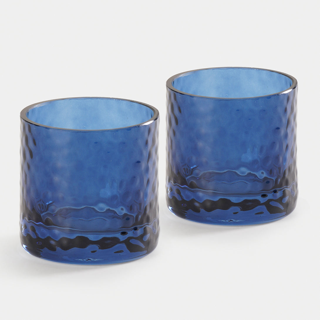 Set of 2 Blue Textured Glass Tealight Candle Holders