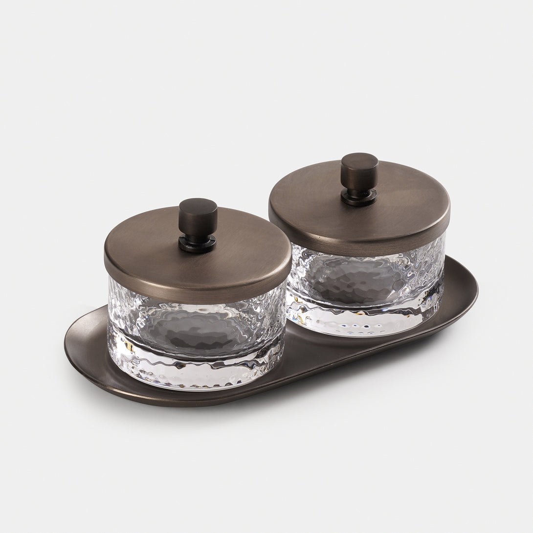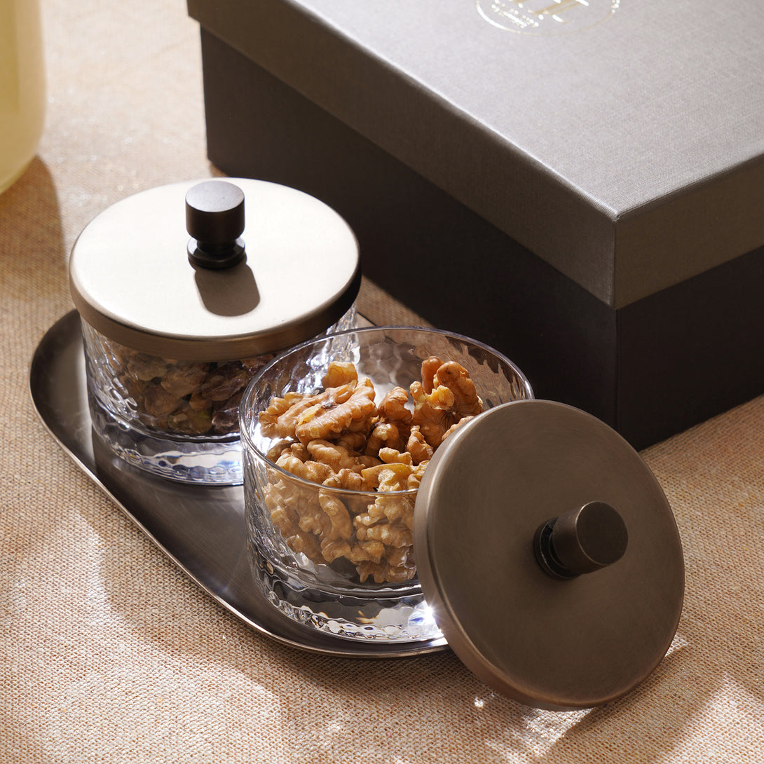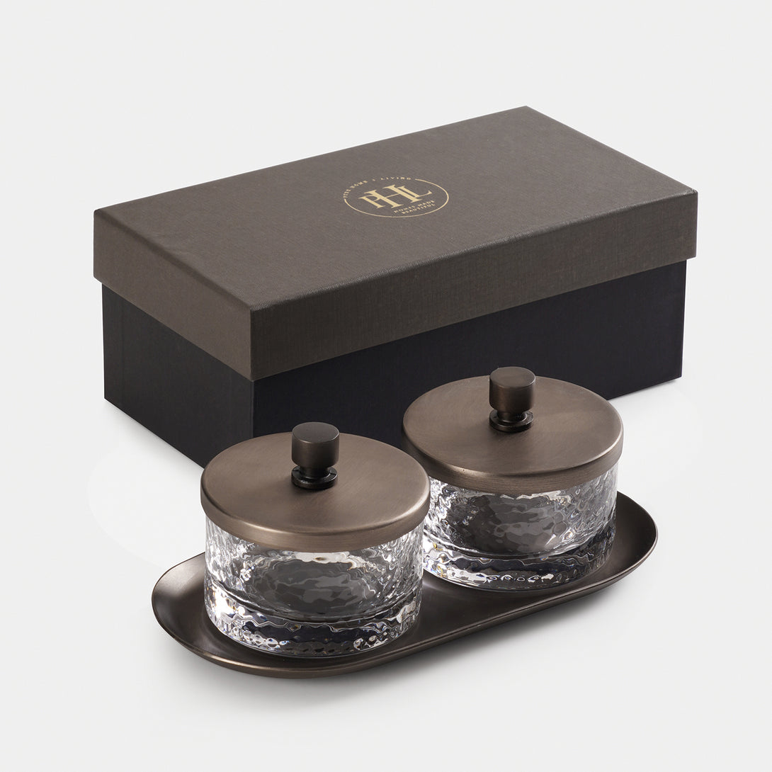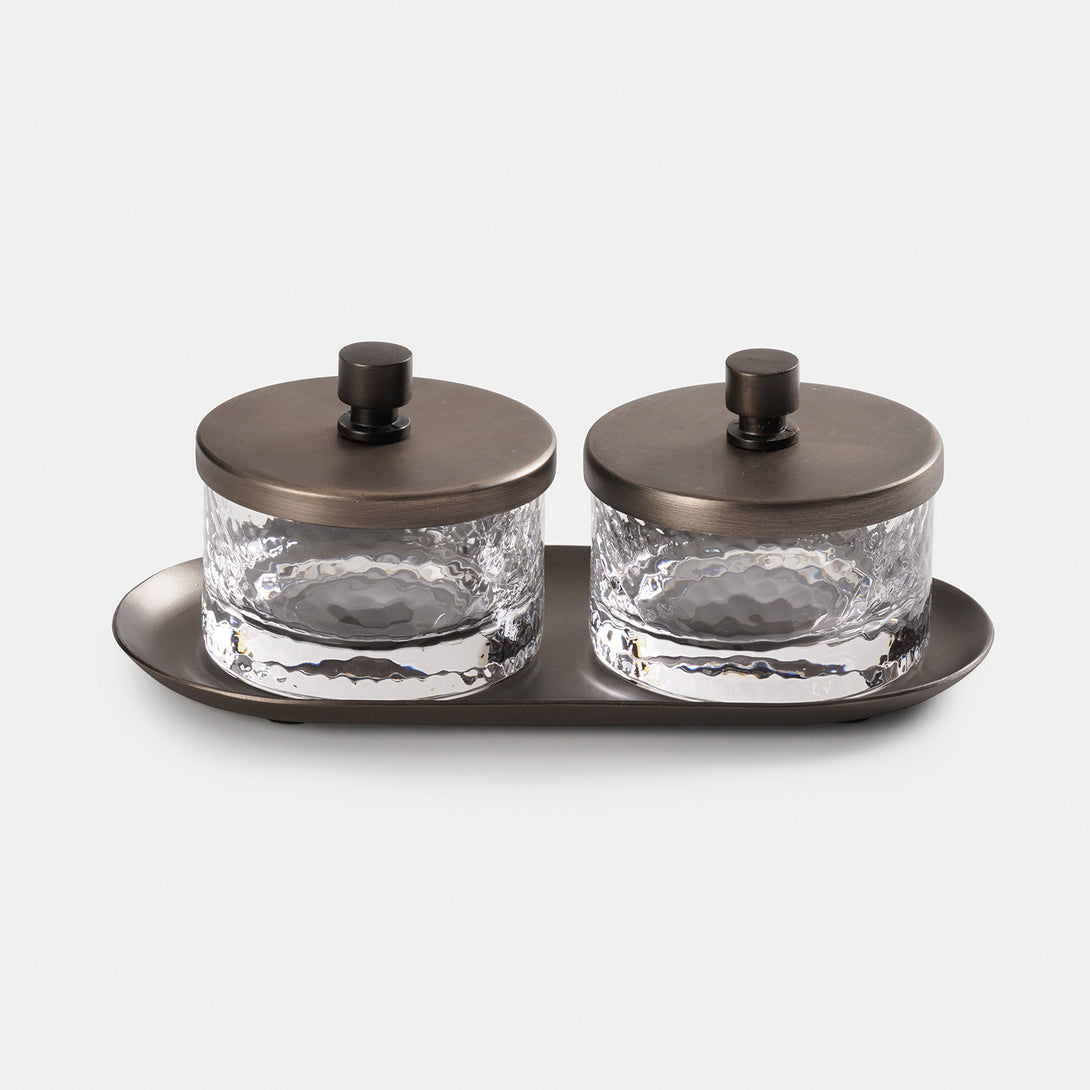 Set of 2 Clear Hammered Condiment Jars with Tray - Medium