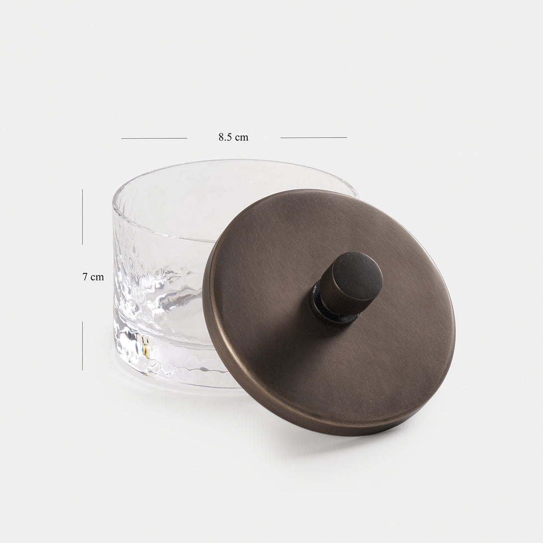 These hammered glass condiment jars with metal lids are perfect for serving sauces, spices, or condiments with a refined and modern touch.