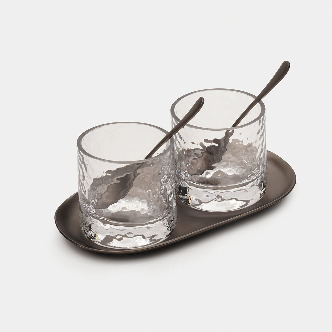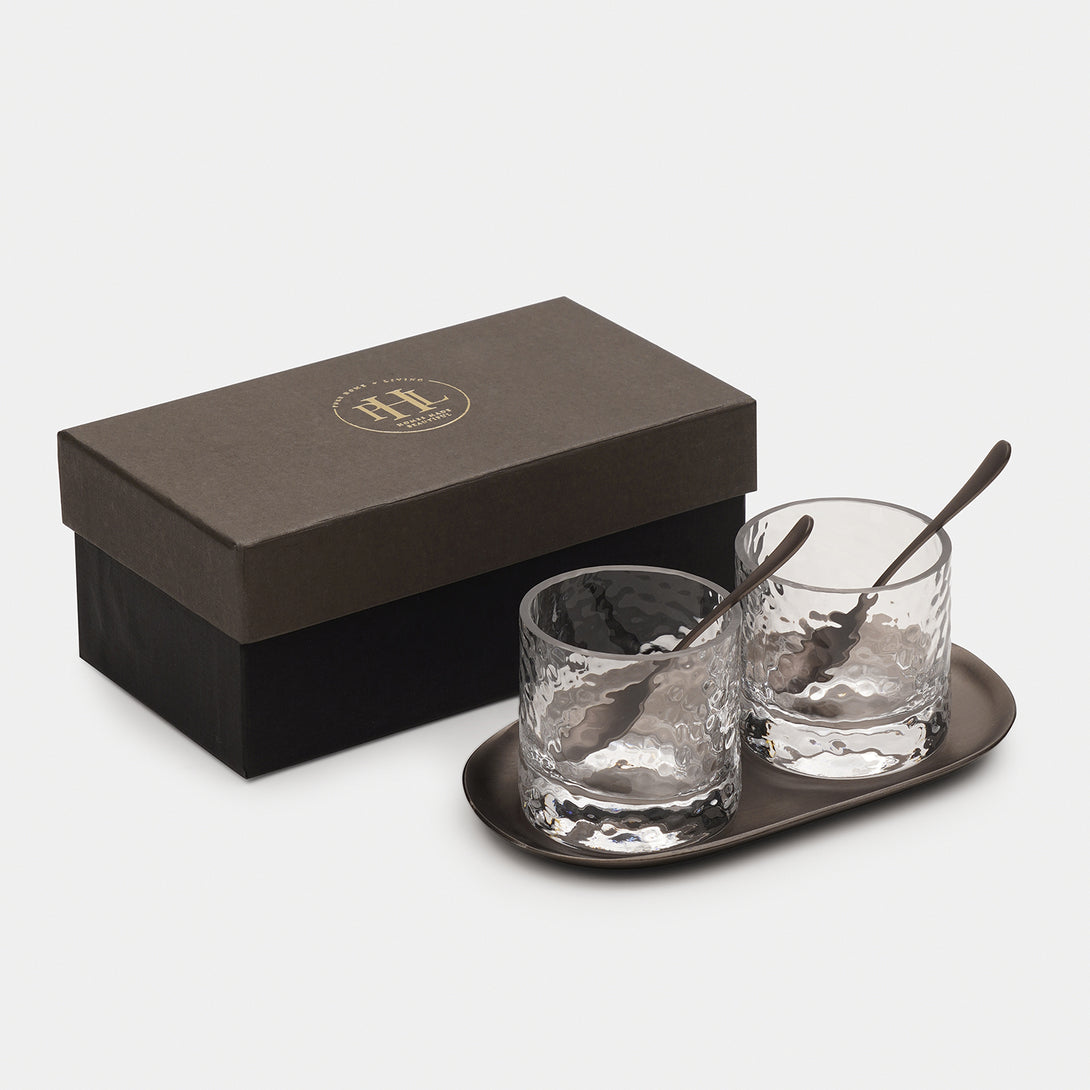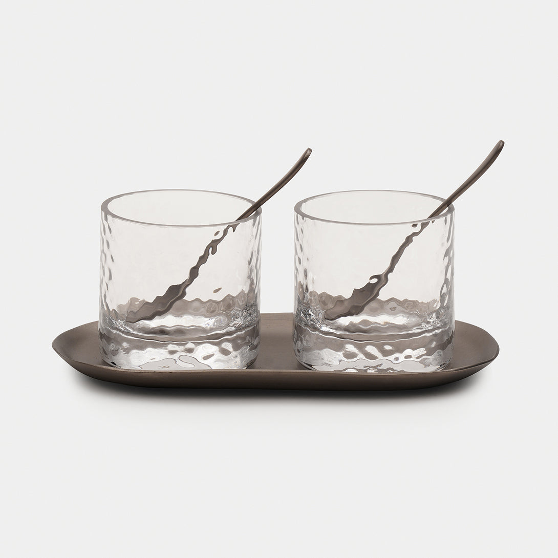 Set of 2 Clear Hammered Condiment Jars with Tray - Small