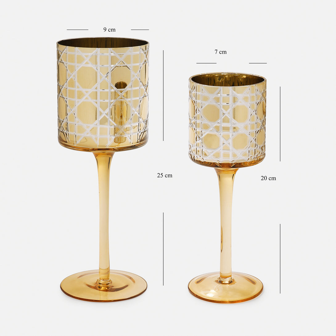 Set of 2 Gold Star Cut Stem Glass Candle Holders