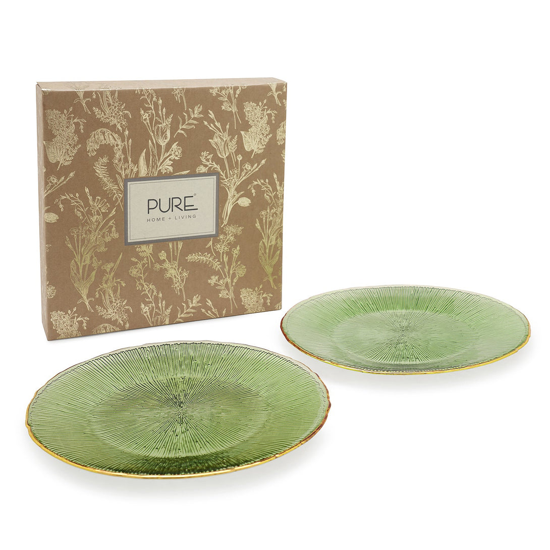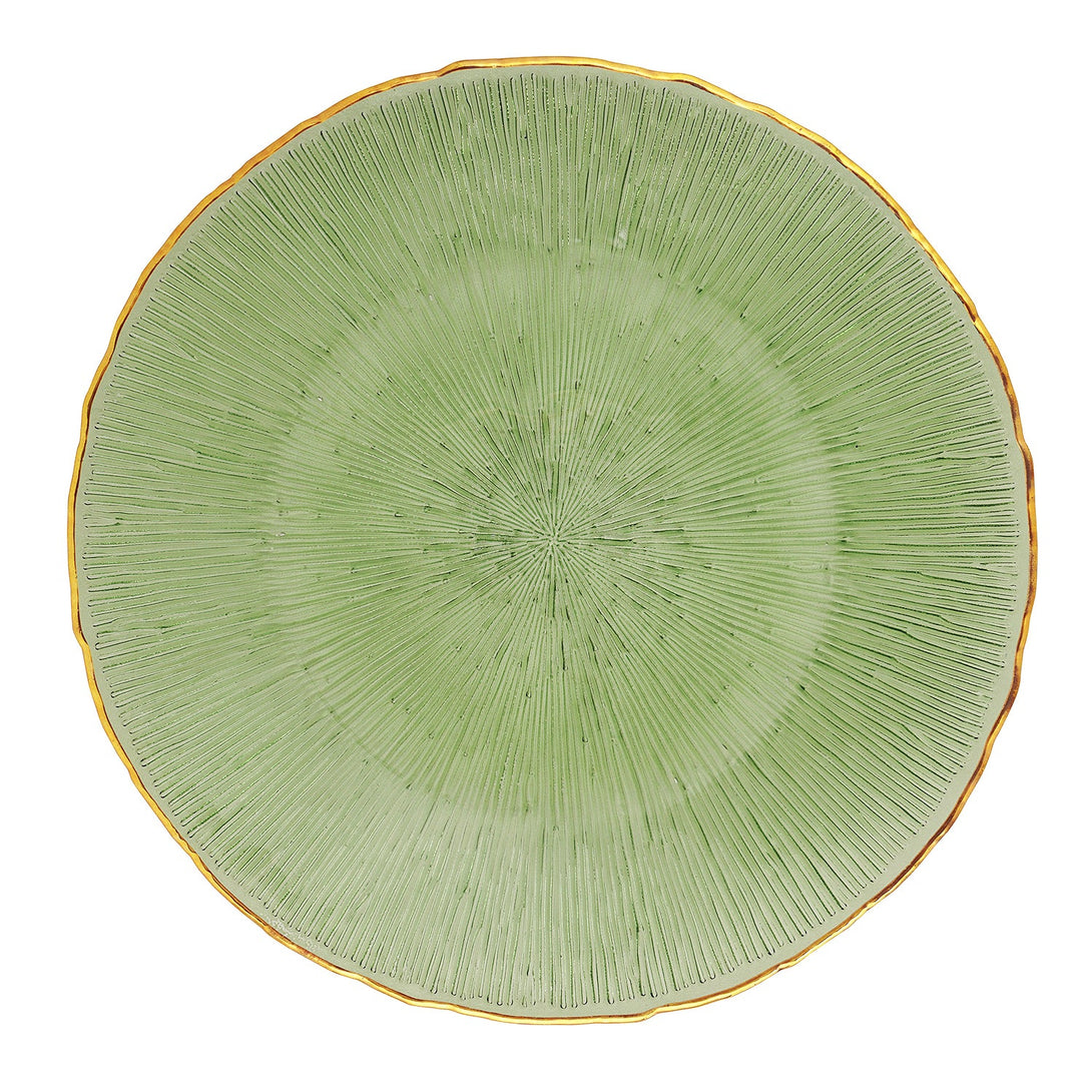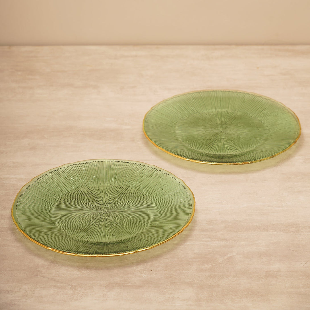Set Of 2 Light Green Radial Glass Dinner Plates