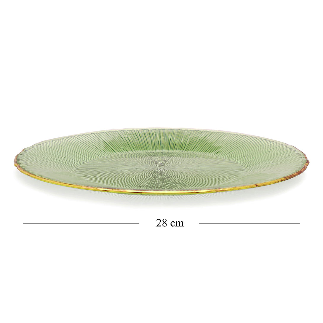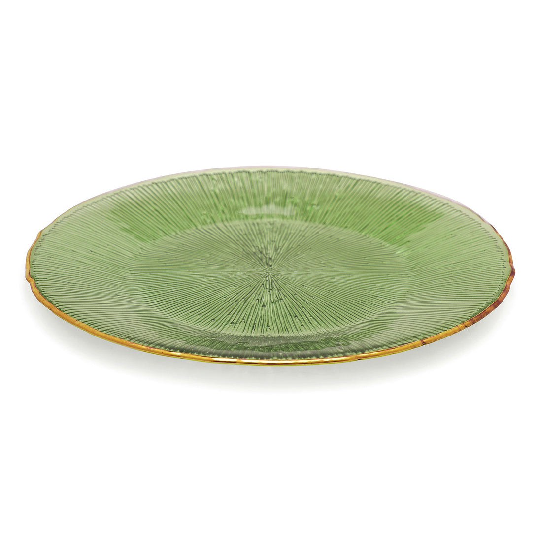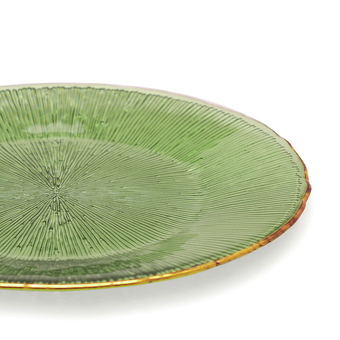 Set Of 2 Light Green Radial Glass Dinner Plates