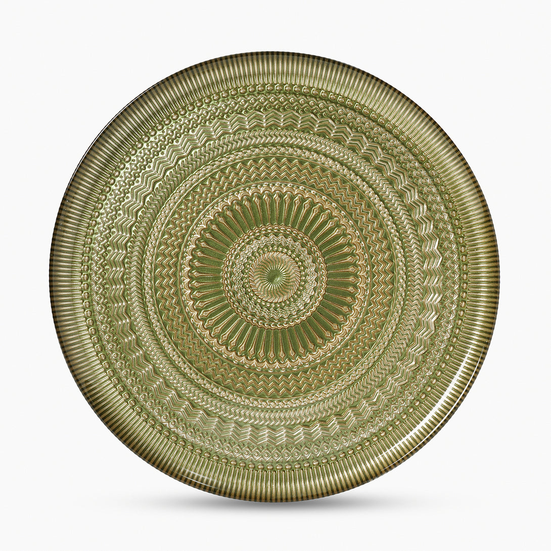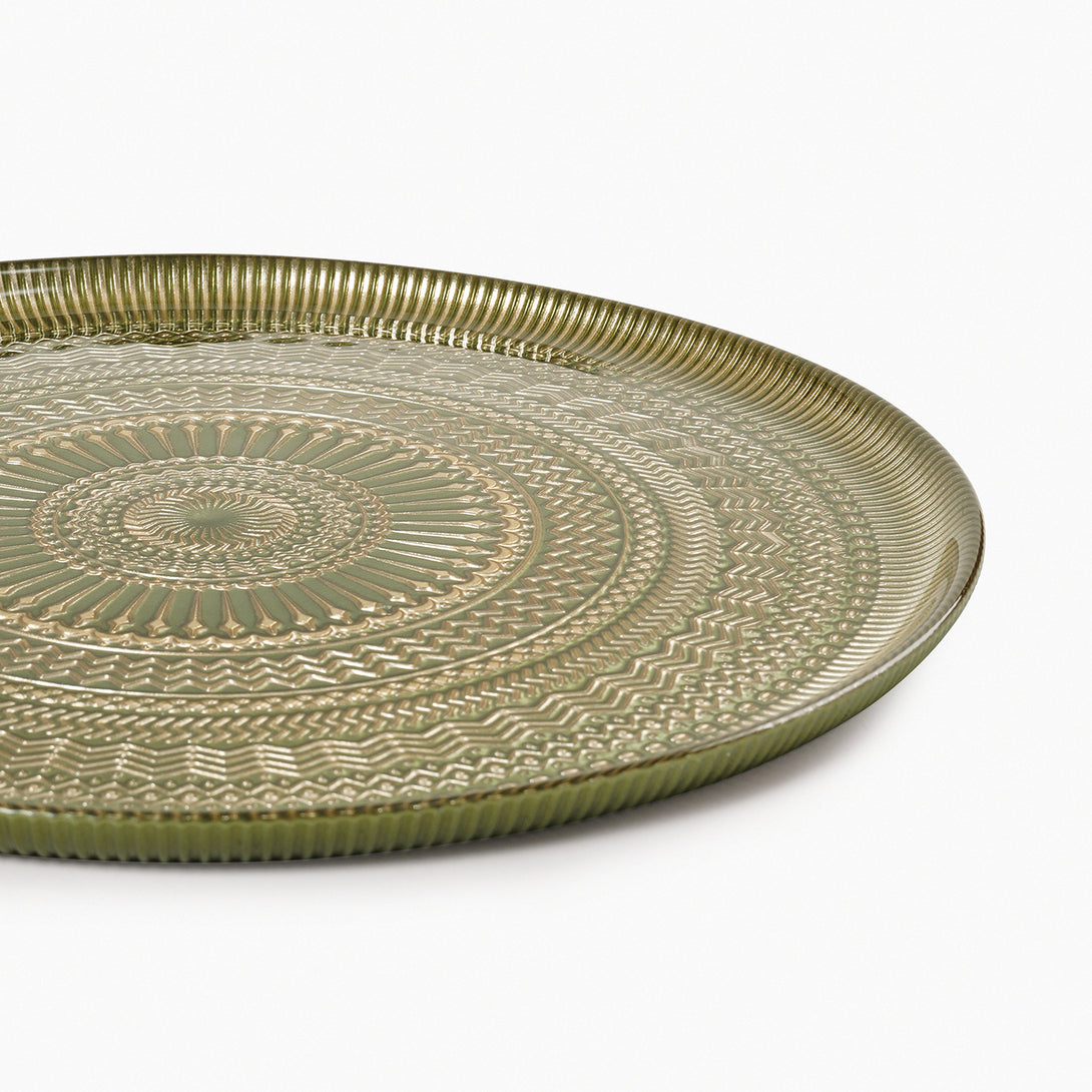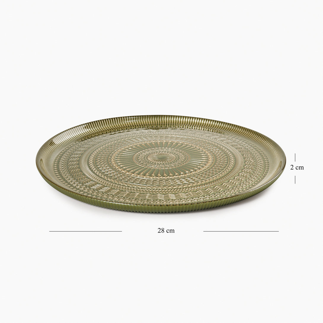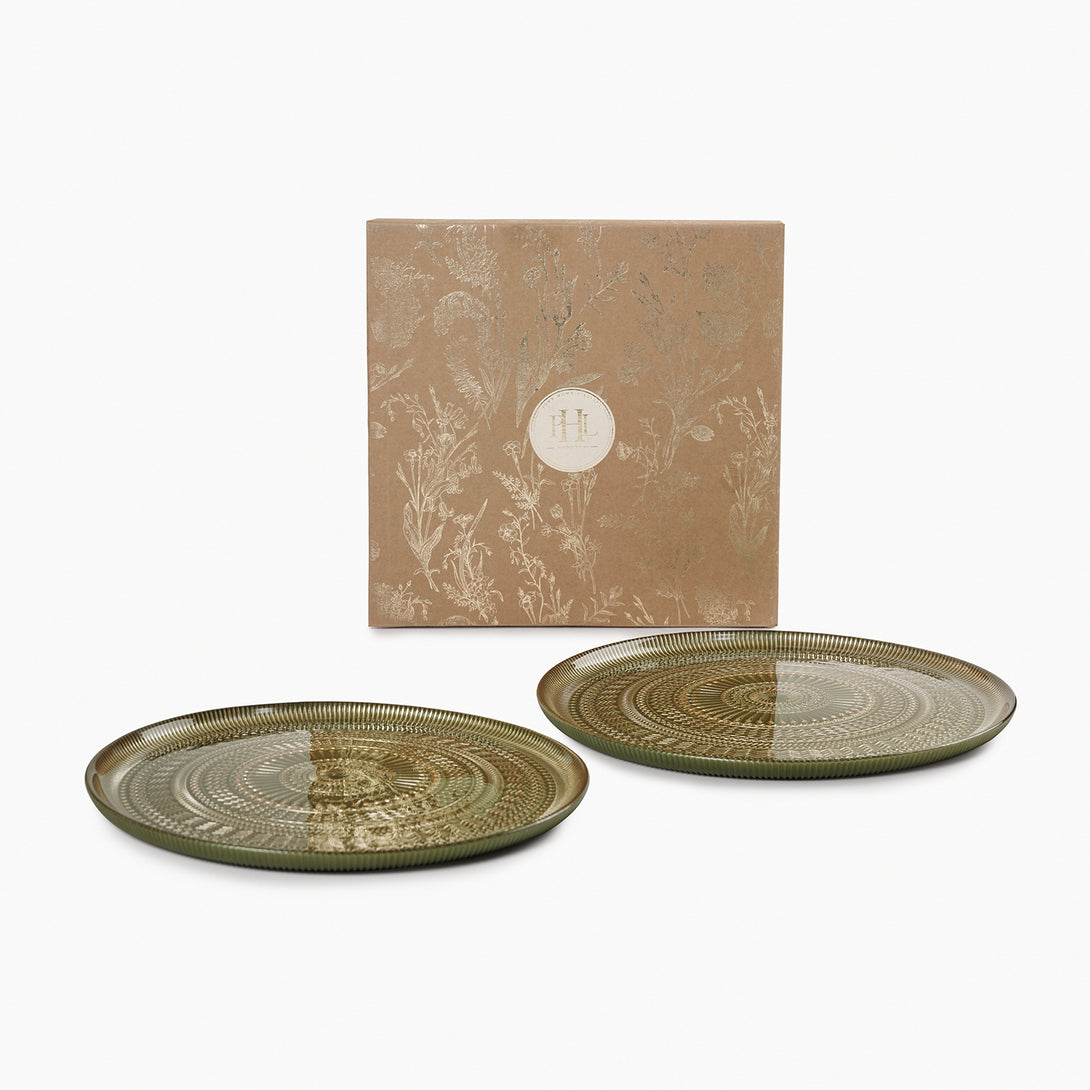 Set of 2 Green Ribbed Dinner Plates