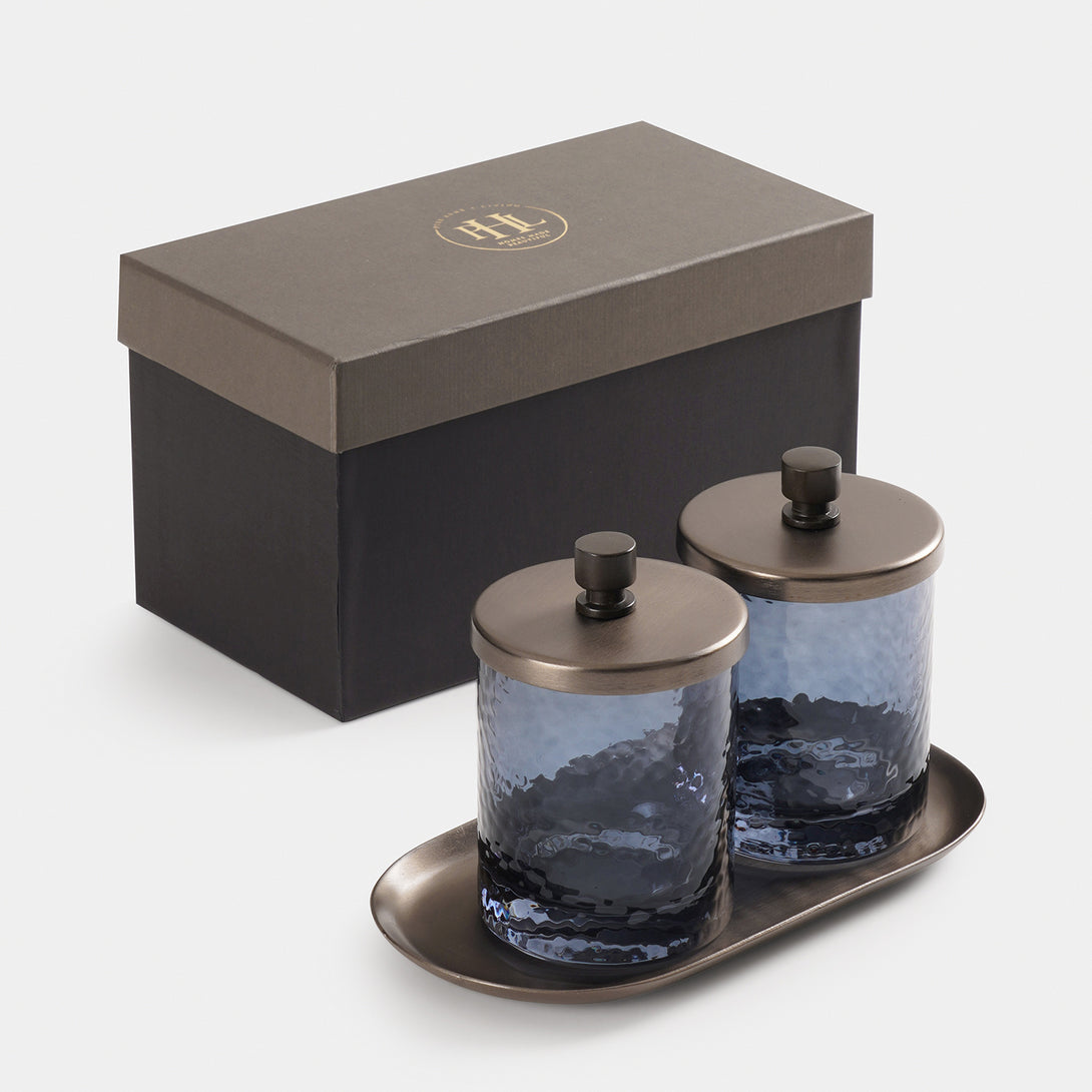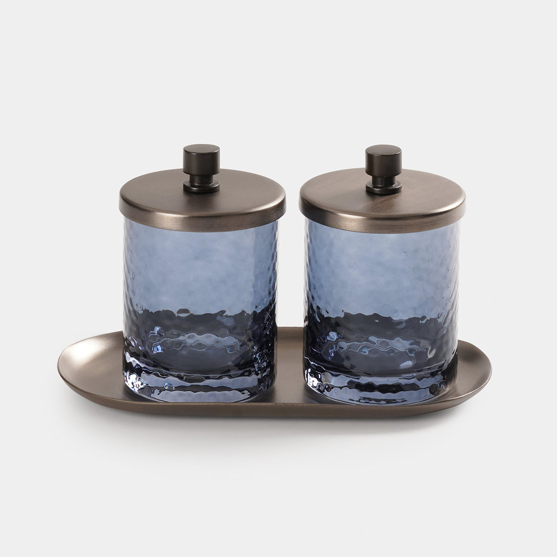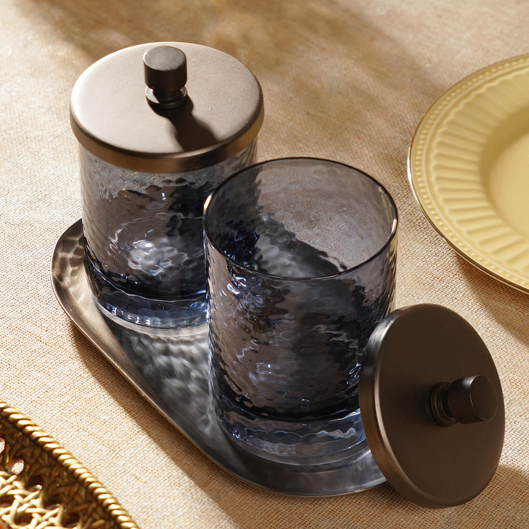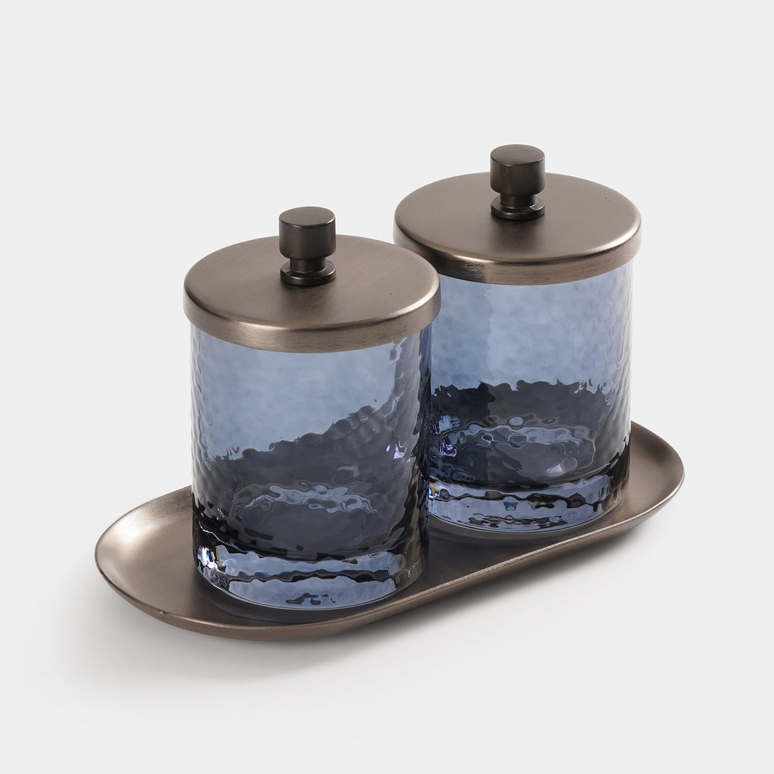 Set of 2 Grey Hammered Condiment Jars with Tray - Large