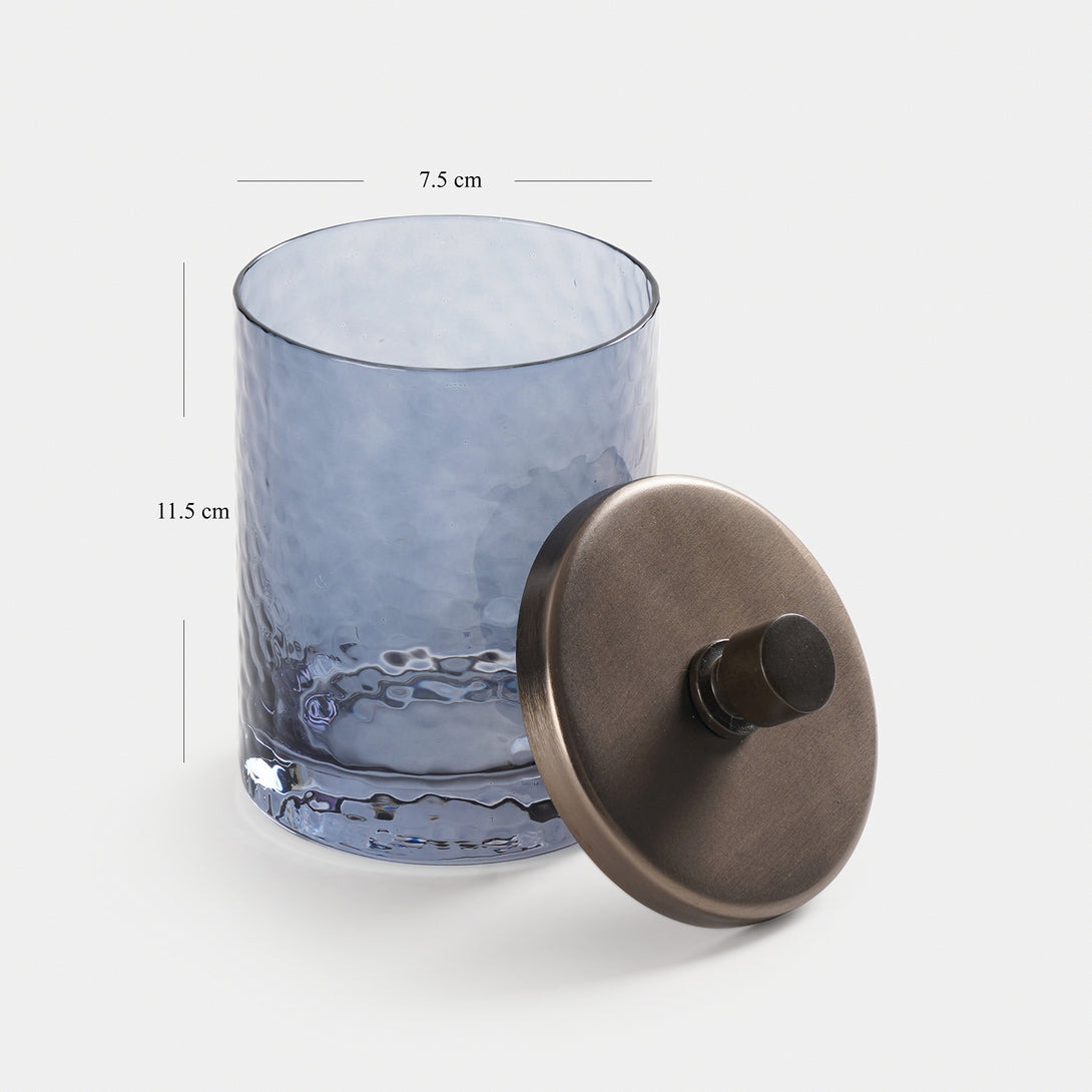 These hammered glass condiment jars with metal lids are perfect for serving sauces, spices, or condiments with a refined and modern touch.
