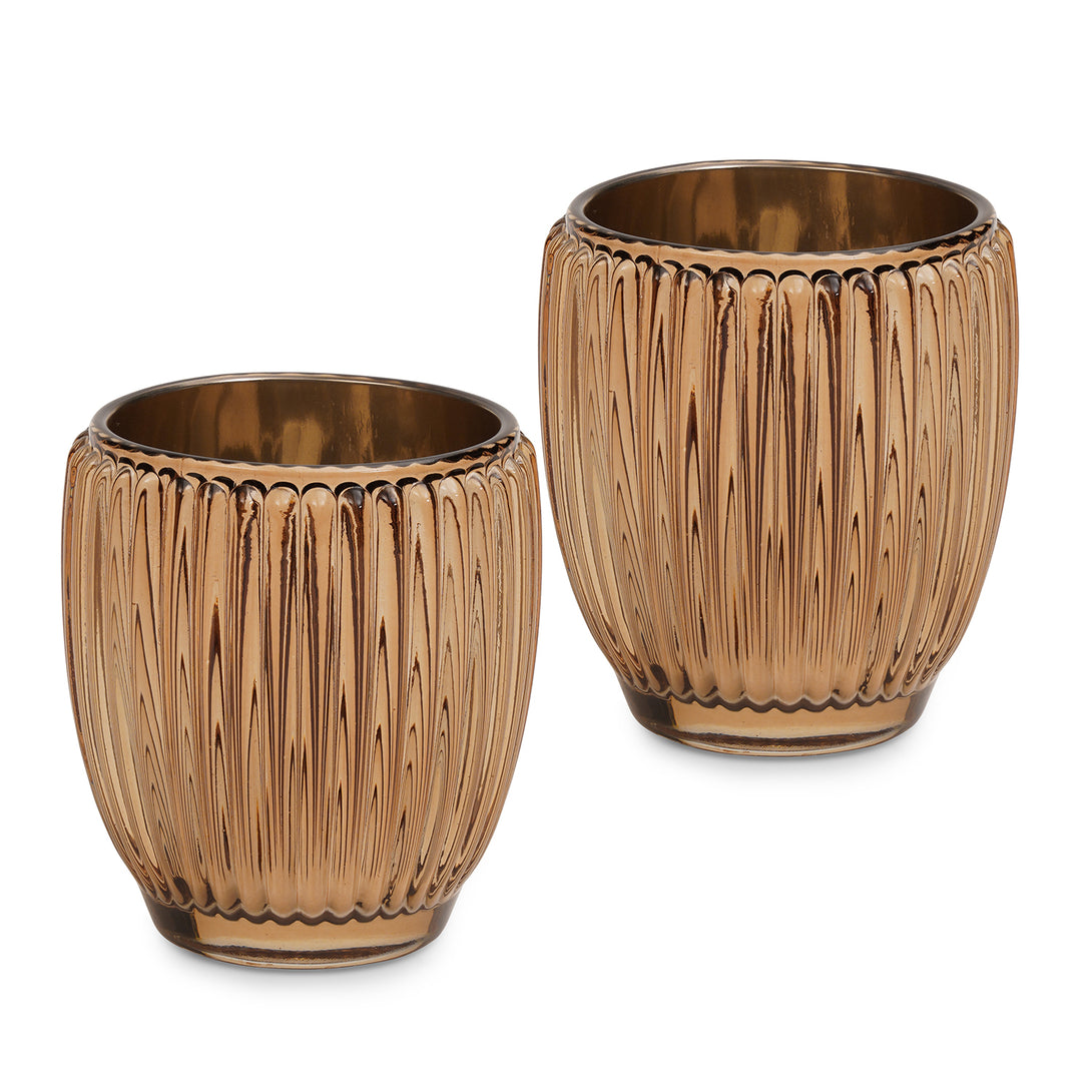 Set of 2 Light Amber Ribbed Texture Tealight Holders