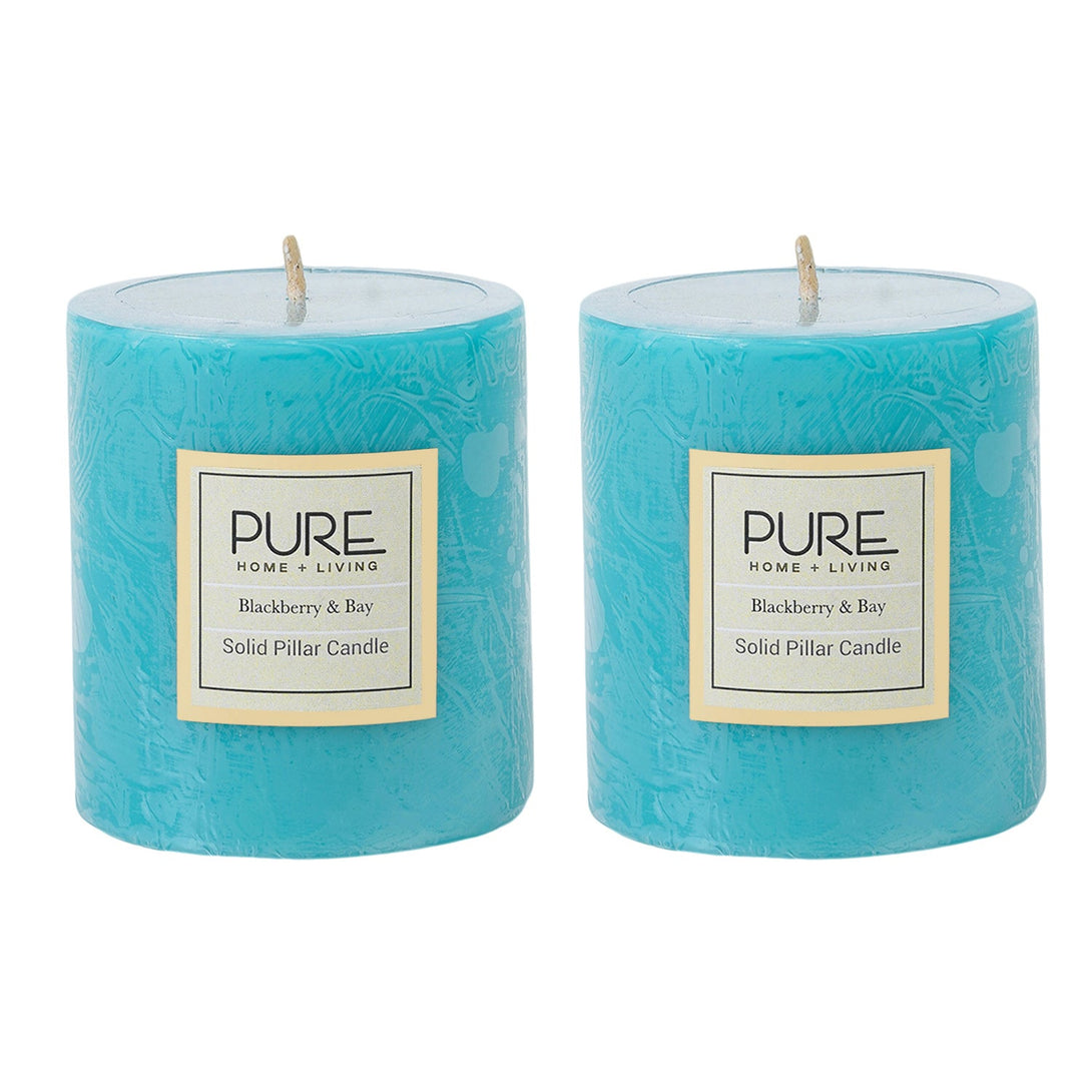 Set Of 2: Medium Aqua Blackberry And Bay Pillar Candle