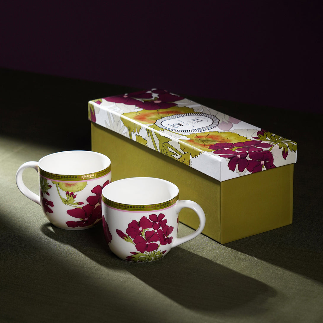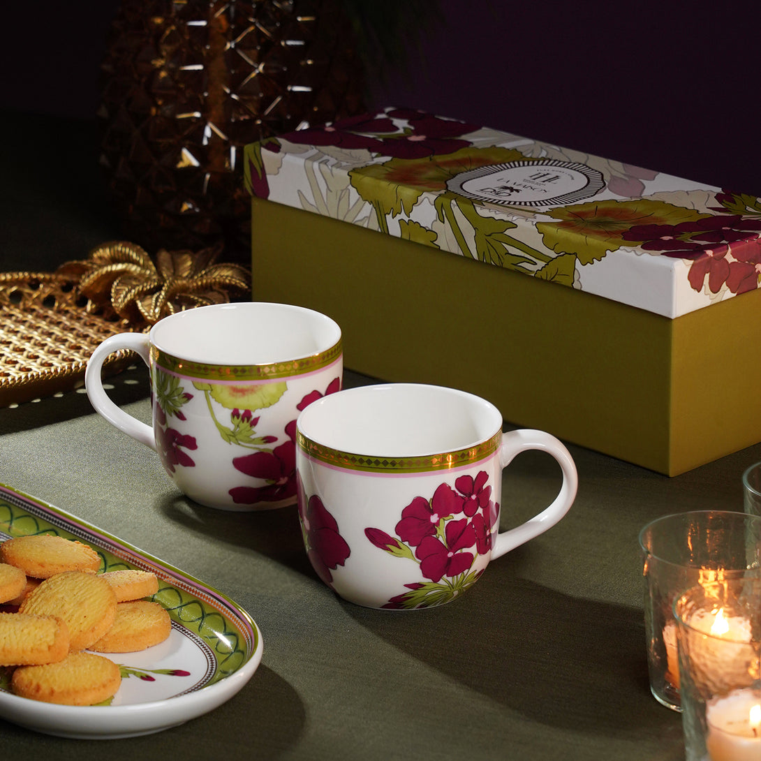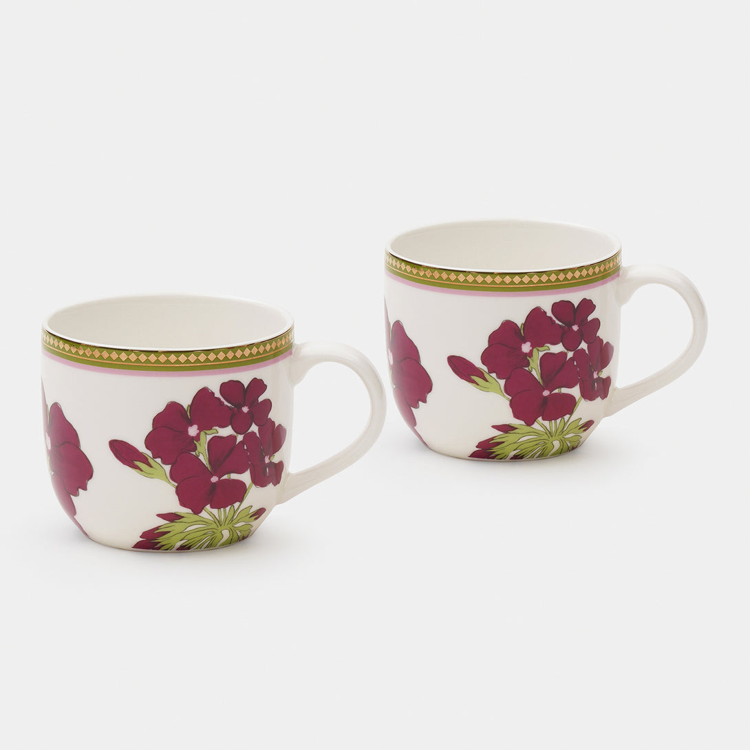 Set of 2 Red & Green Rosabay Print Coffee Mugs