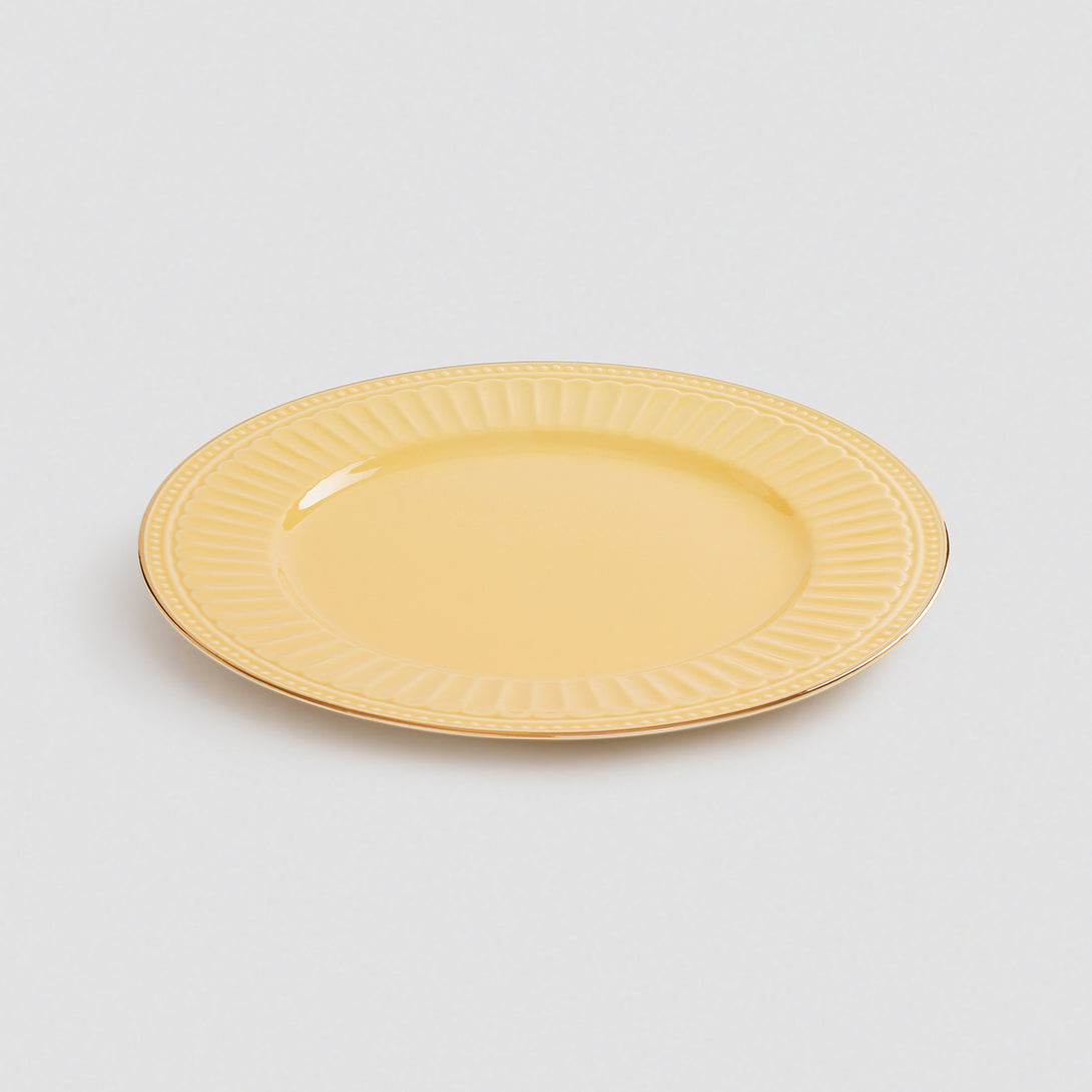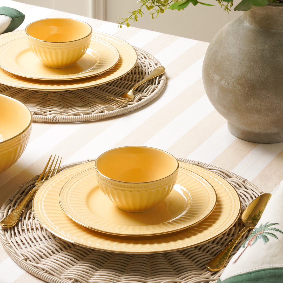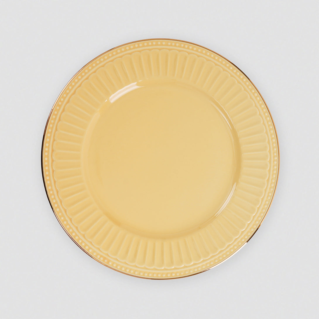Crafted with precision and detailed with a 24-karat real gold rim, these yellow plates feature a calming shade and wide ribbed detail that will turn ordinary dinners into exquisite feasts.Â