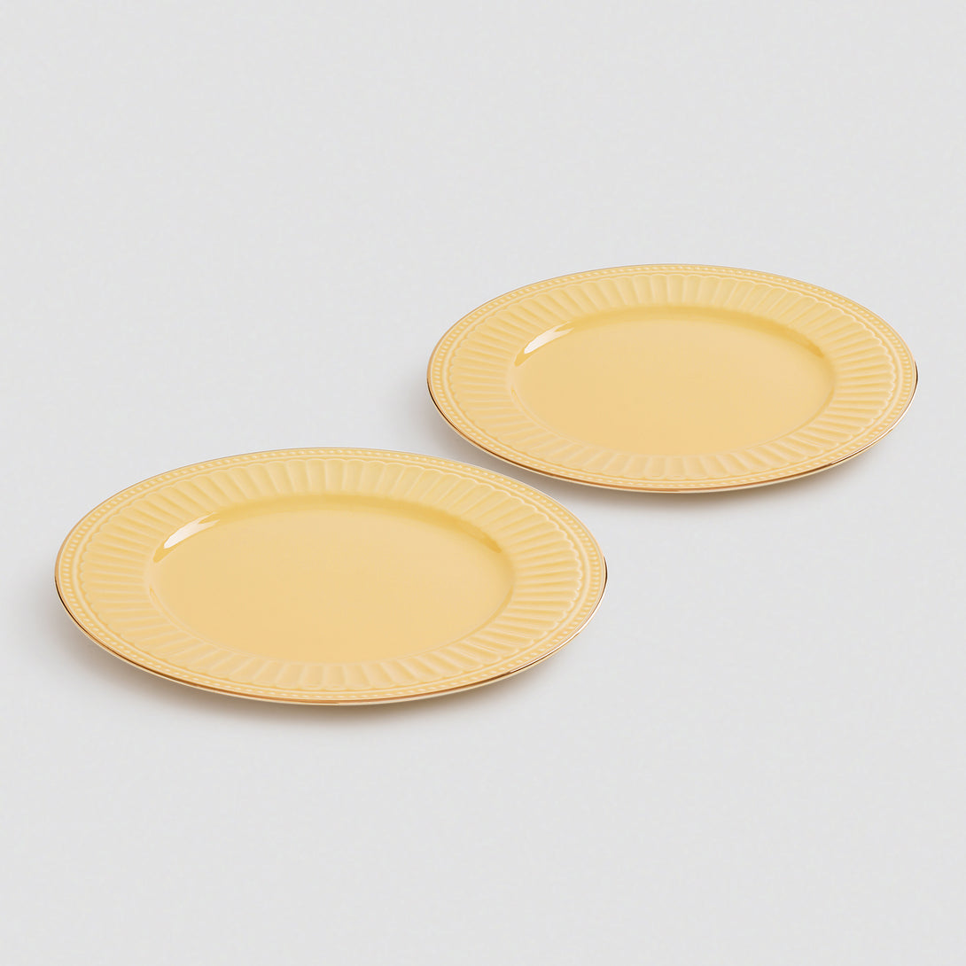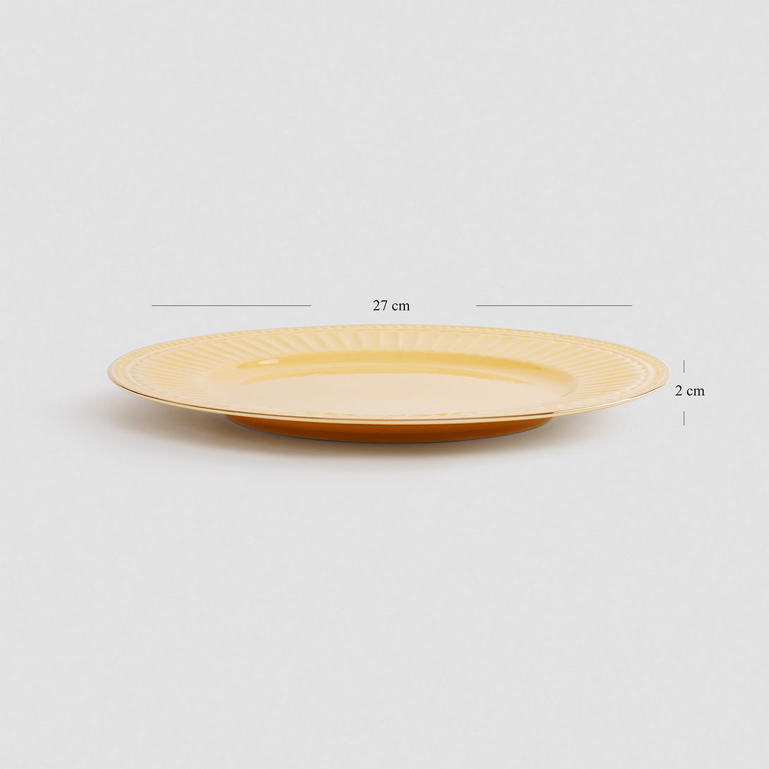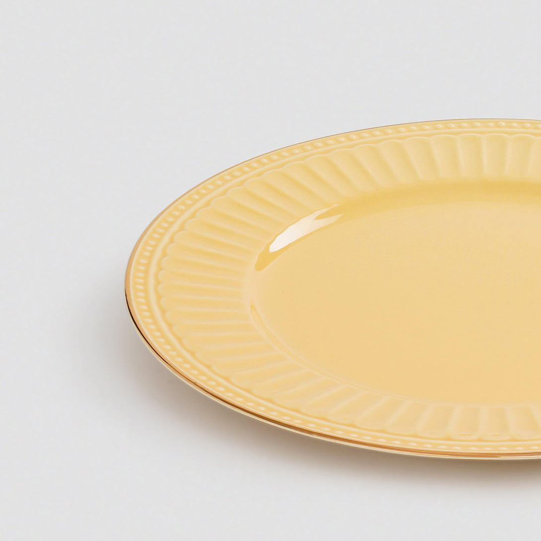 Crafted with precision and detailed with a 24-karat real gold rim, these yellow plates feature a calming shade and wide ribbed detail that will turn ordinary dinners into exquisite feasts.Â