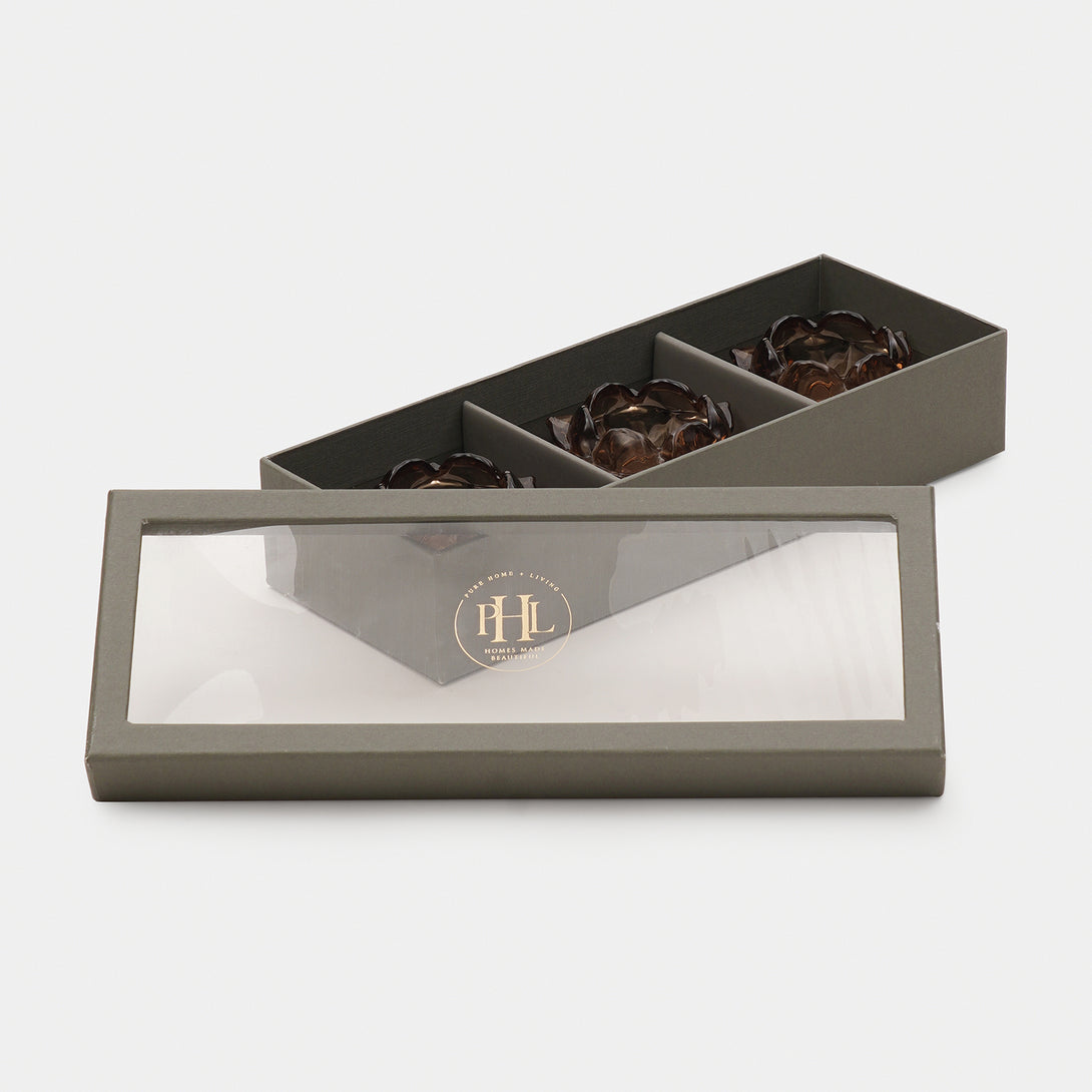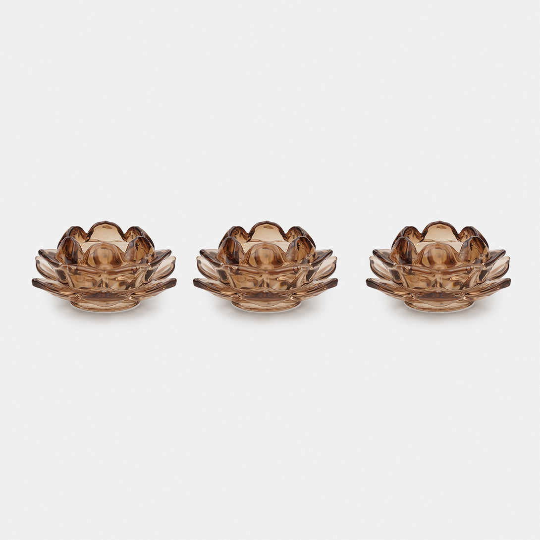 Set of 3 Amber Lotus Shaped Tea Light Holders