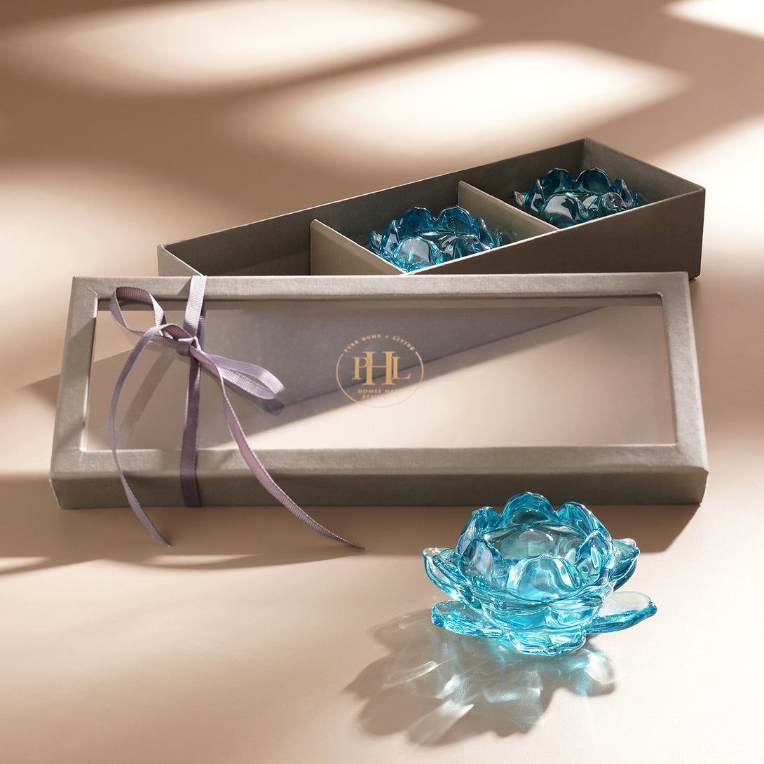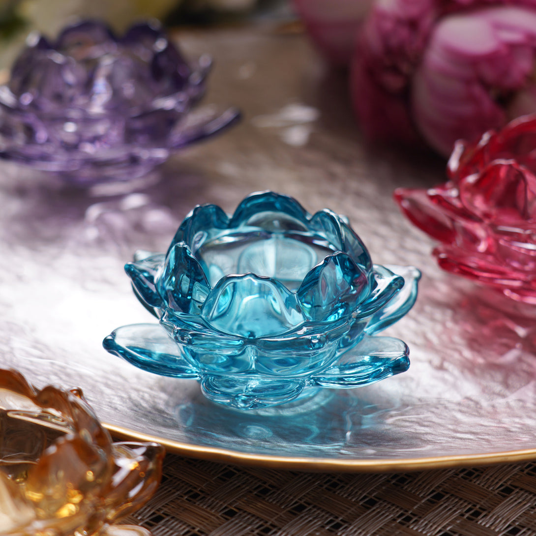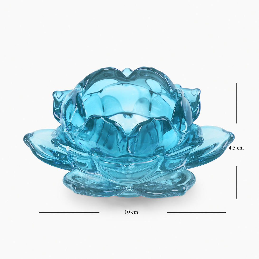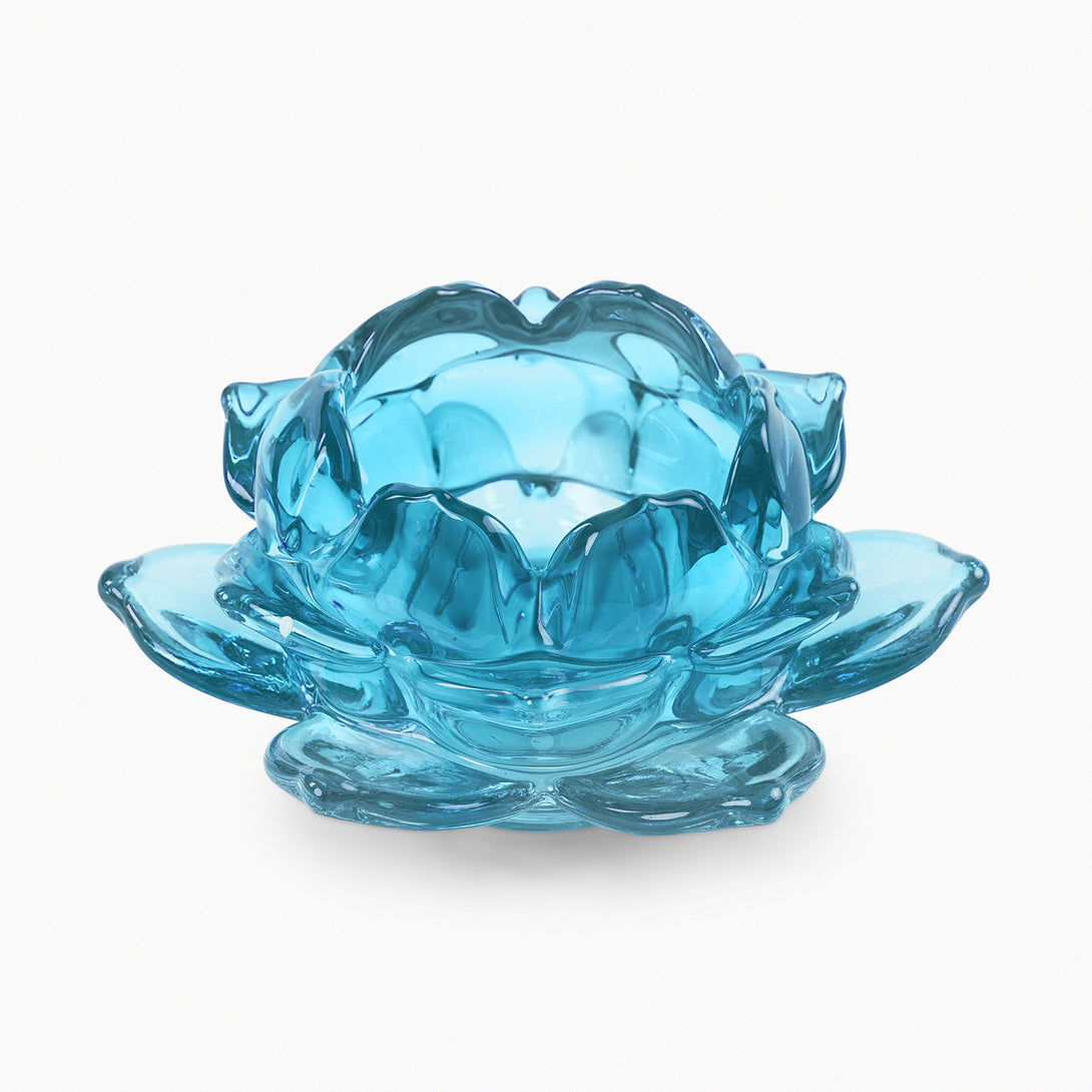 Add a serene touch to your home decor with our blue glass lotus shaped tealight holders. Crafted with exquisite attention to detail, these holders feature delicate glass petals that form a stunning lotus flower, symbolizing purity and tranquility.Â