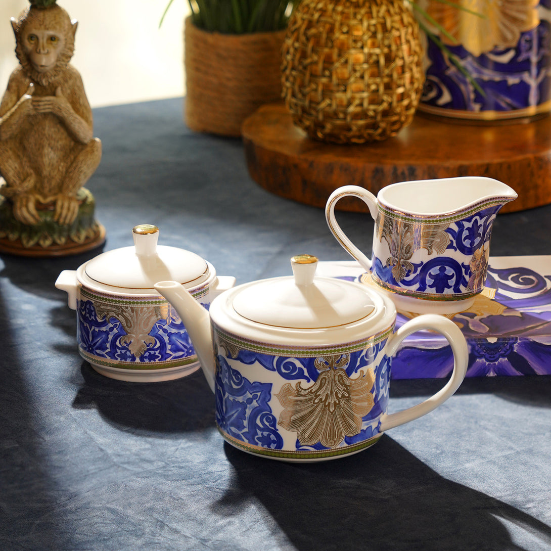 Set of 3 Blue & Ivory Amalfi Print Tea Set