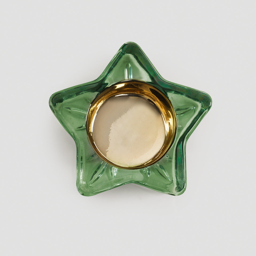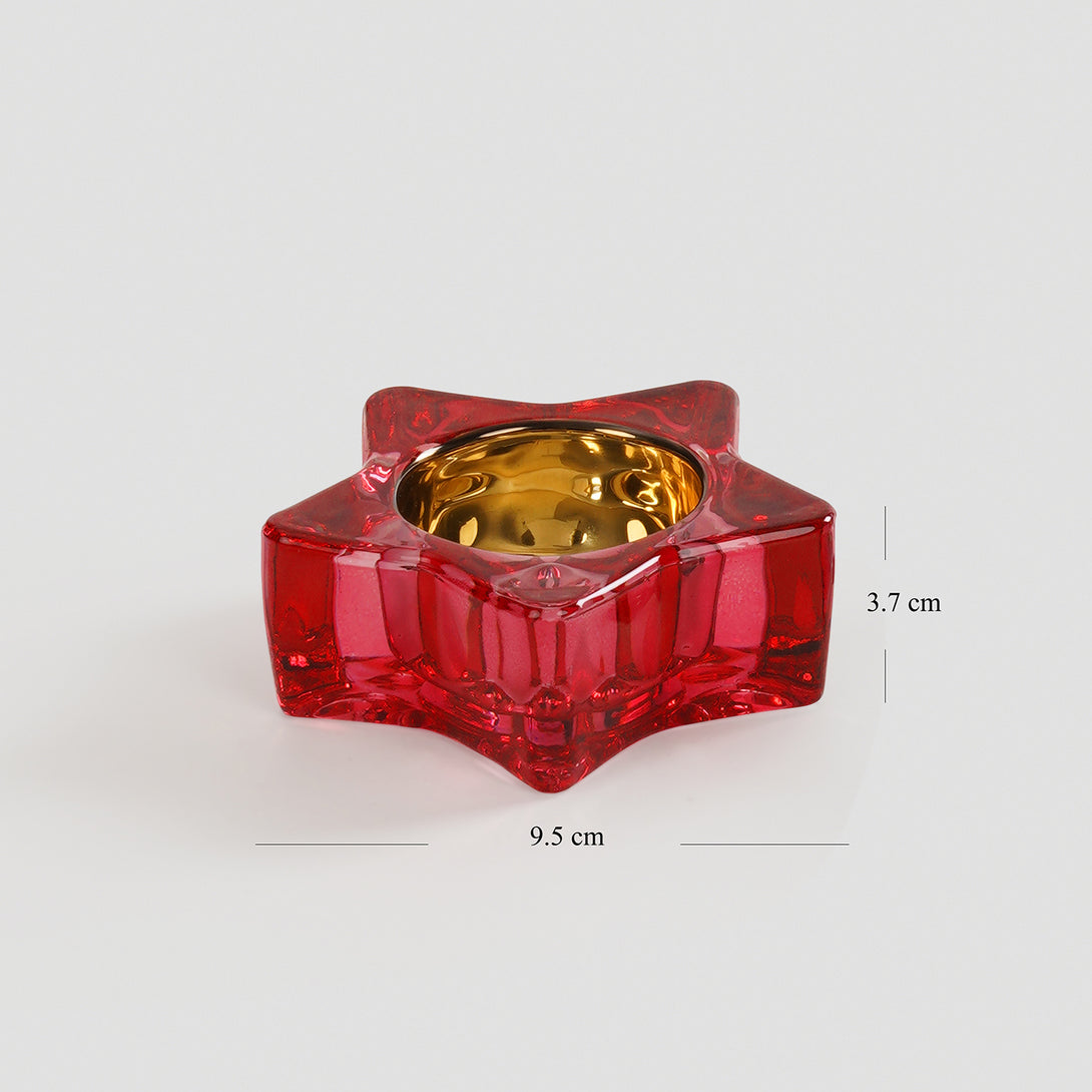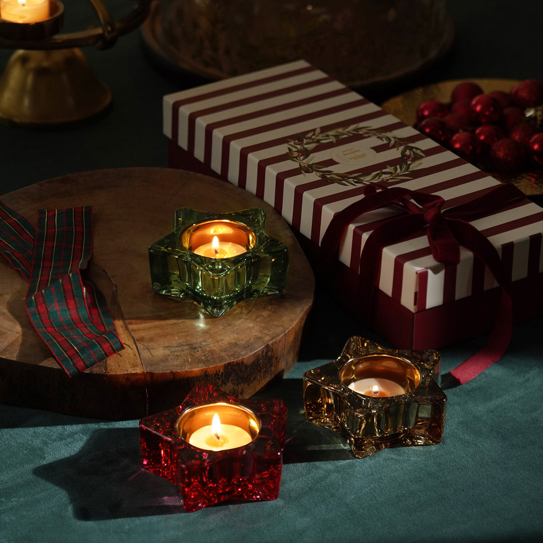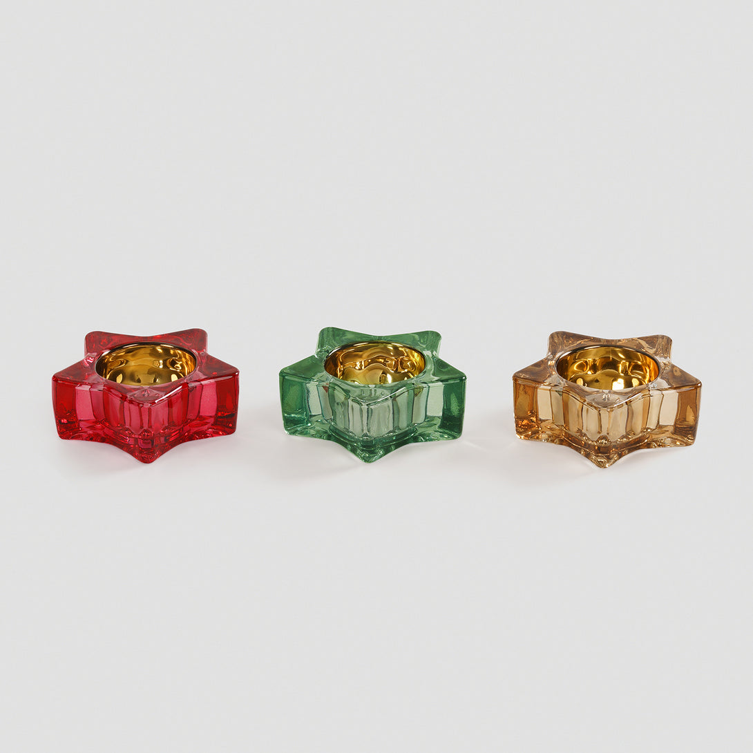 Set Of 3 Green Red Amber Star Shaped Glass Tealight Holders