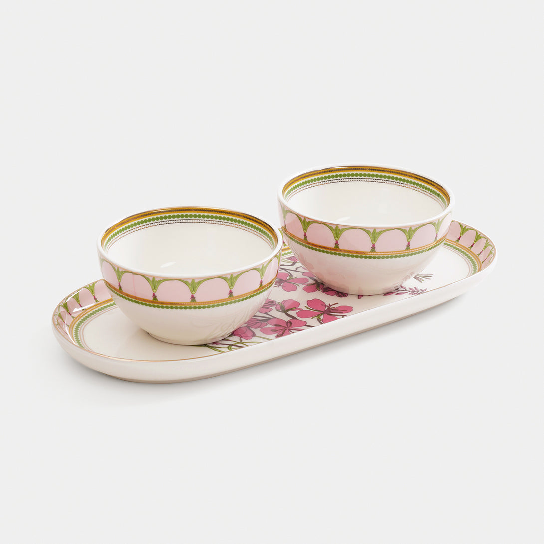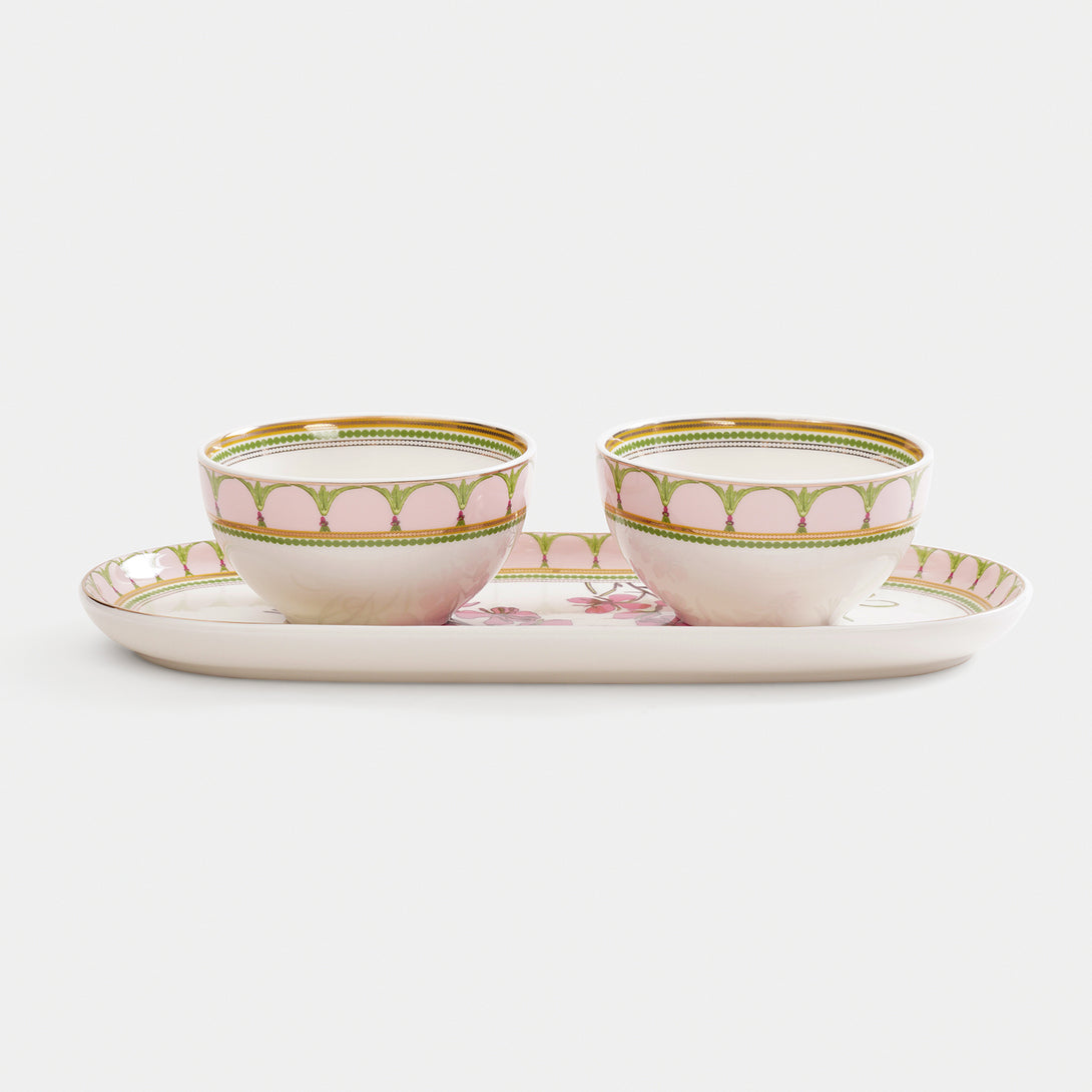 Set of 3 Pink Tuileries Print Platter & Bowls