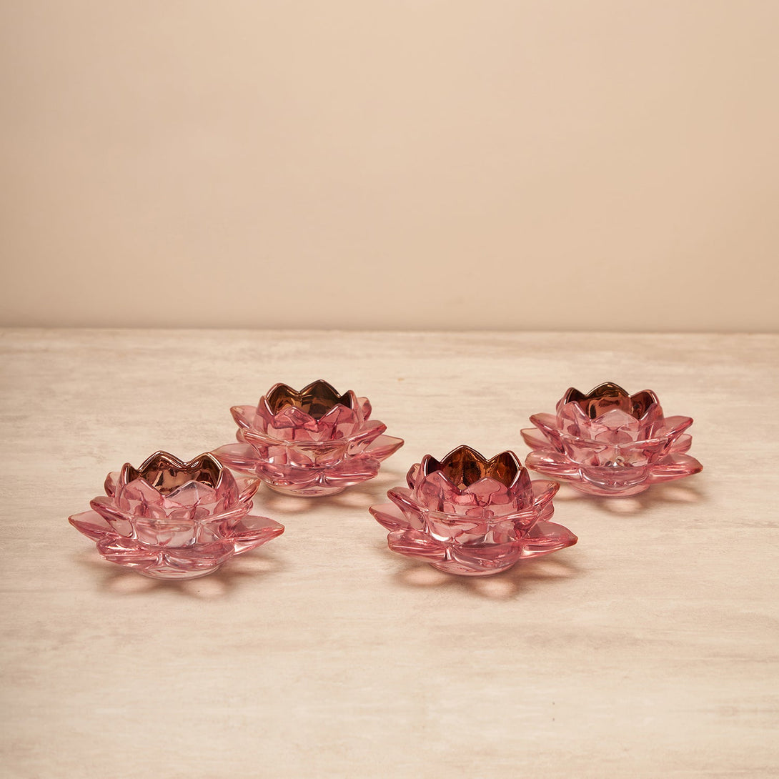 Give your home a glowing update with these pink tealight holders. Crafted in a lotus shape, these holders are sure to stand out be it on your drawing room table, fireplace mantel, or entryway console. Comes in a set of four.