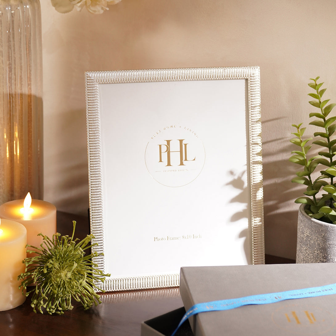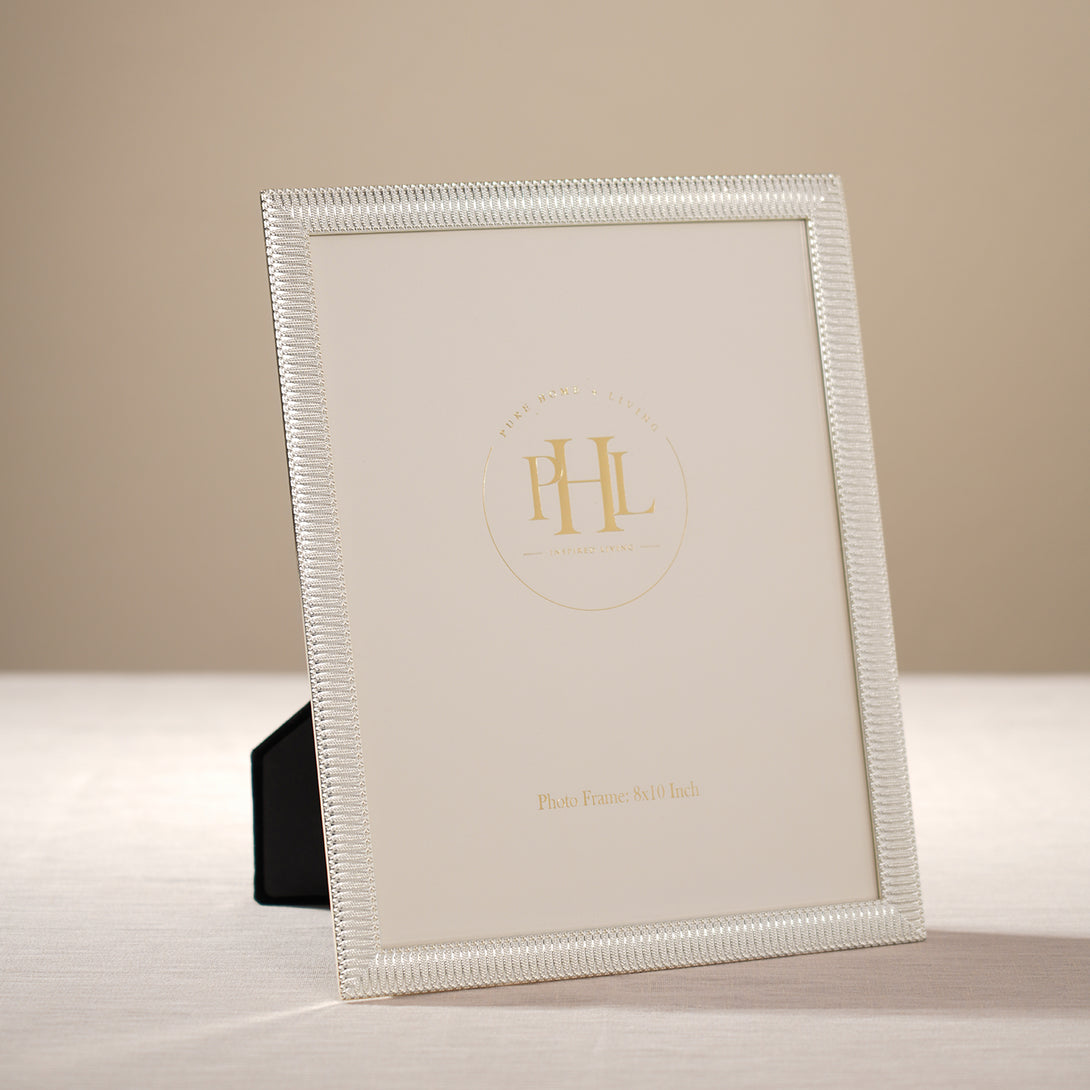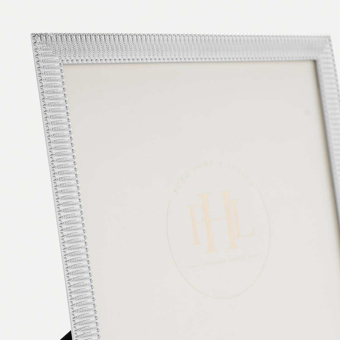 Silver Plated Ribbed Pattern Metal Photo Frame - Large