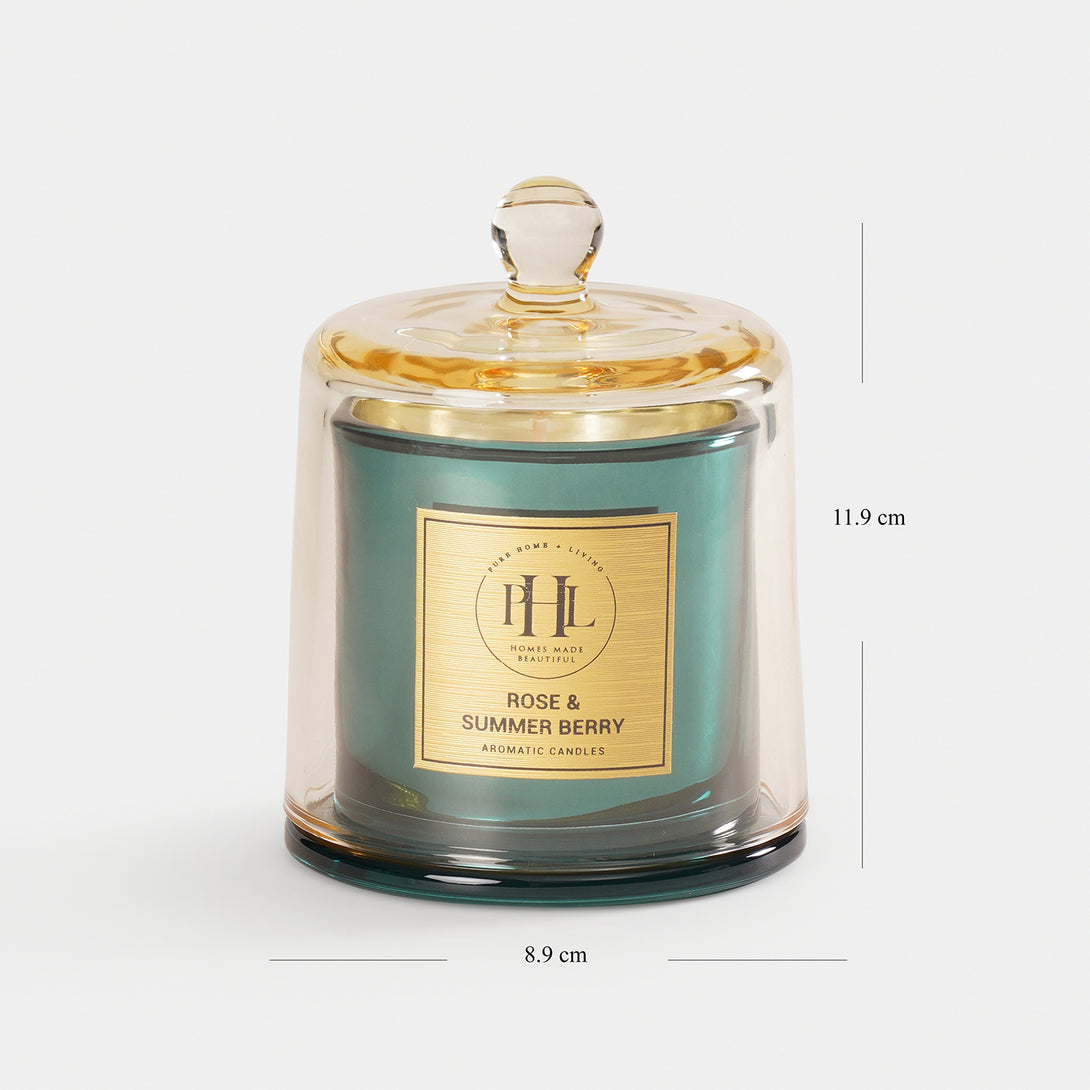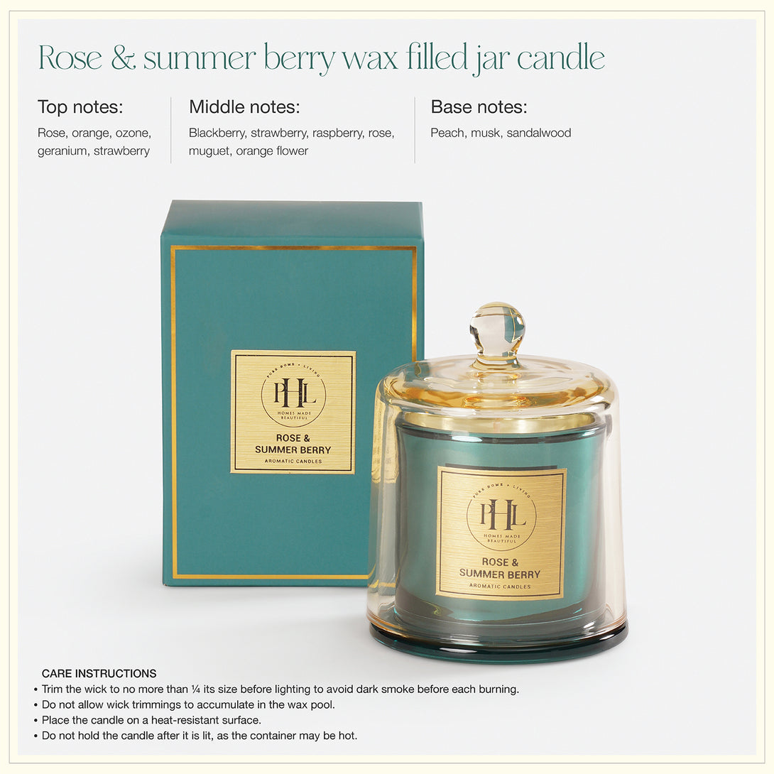 Teal Scented Wax Filled Bell Jar Candle - Rose & Summer Berry